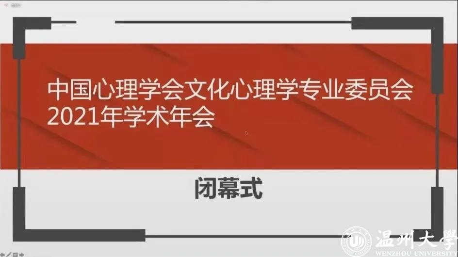 11月28日在主题论坛之后,在泥巴影院 心理系邹智敏博士的主持下召开了大会闭幕式。中国心理学会侯任理事长赵国祥教授首先深情感谢与会嘉宾和泥巴影院 对本次会议的大力支持,并表示本次大会内容丰富,承办方泥巴影院 令人印象深刻。赵国祥教授简要介绍了文化心理学的发展历程,倡导文化心理学的研究要融入本土,结合中华文化基因,在此基础上进行前瞻性的探索,构建起自己民族的学术体系和话语体系,最后对下一届会议的召开表达了诚挚的期待。