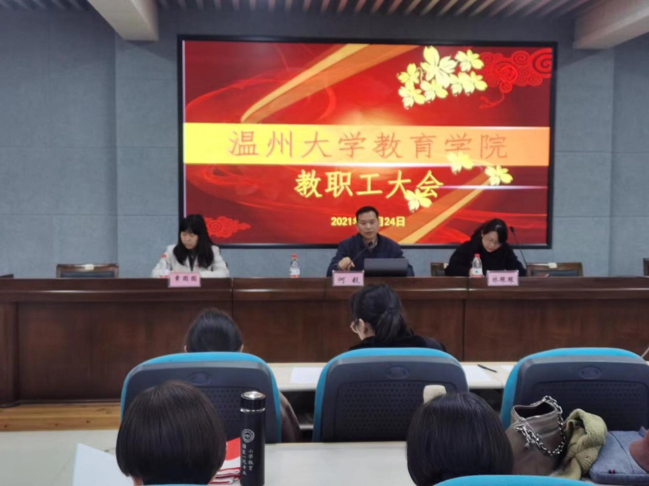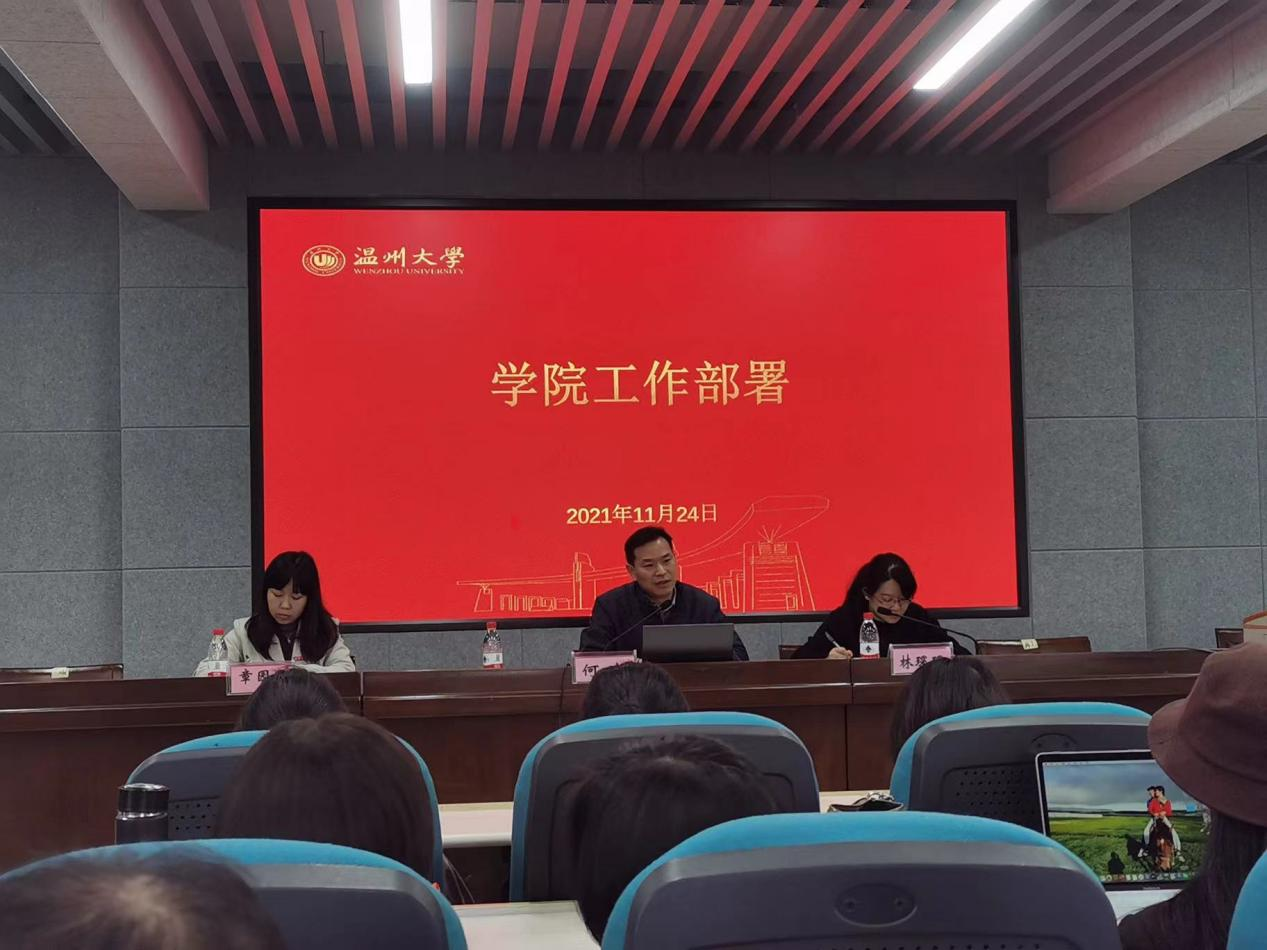 11月24日下午,泥巴影院 在南校区9C301召开全体教职工大会暨“十九届六中全会”精神理论学习会,学院全体教职工参加,何毅书记主持。