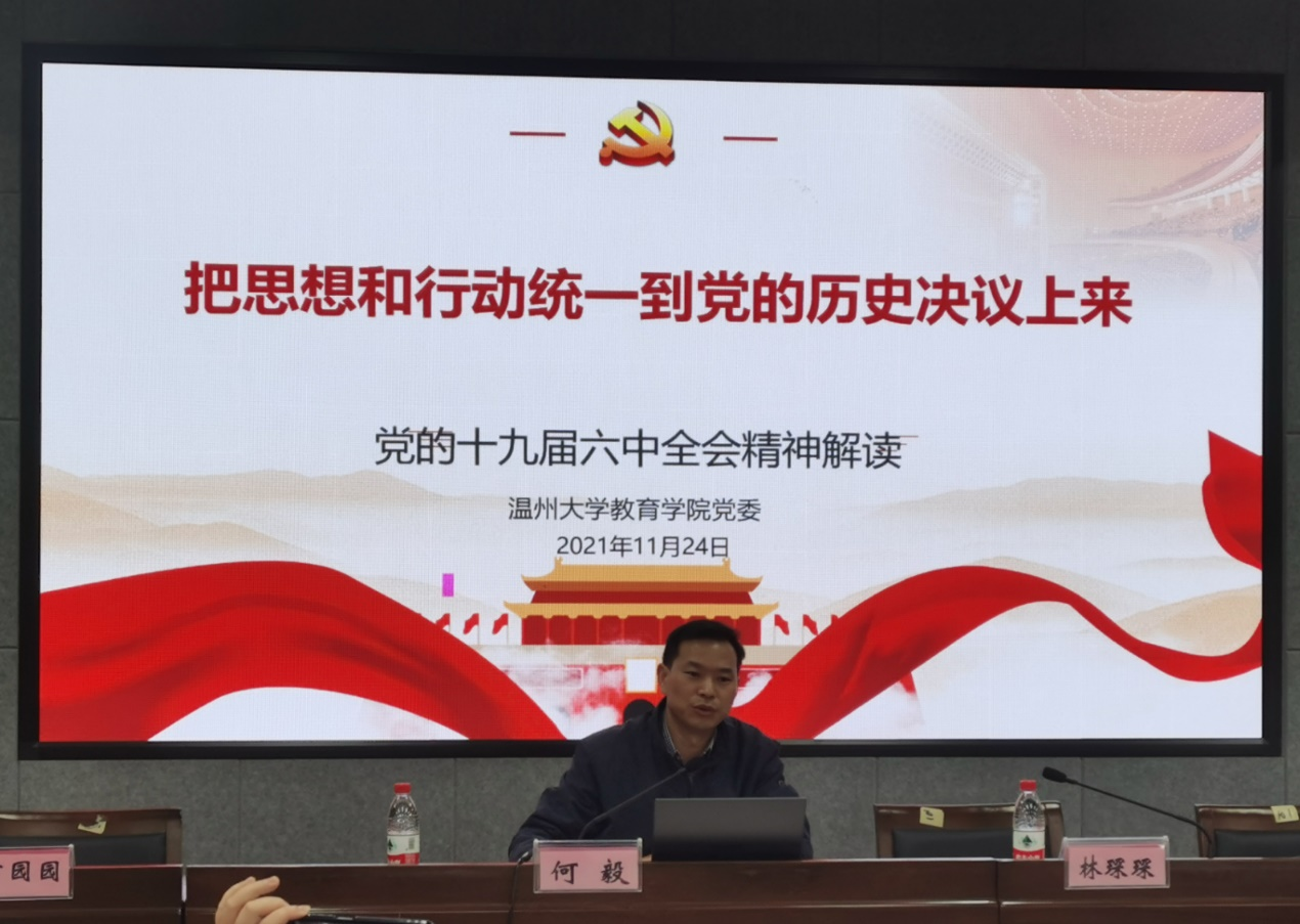 为深入学习贯彻党的十九届六中全会精神,深刻领会会议的精神实质和丰富内涵。教职工大会后,学院举行十九届六中全会理论学习会。此次理论学习会由院党委书记何毅主讲,报告的主题是《把思想和行动统一到党的历史决议上来——十九届六中全会精神学习解读》。何毅书记从深刻领会第三个历史决议的战略考量、深刻领会第三个历史决议的主要内容、深刻领会新时代新征程展现新作为新要求等三方面进行了深刻全面的阐释。