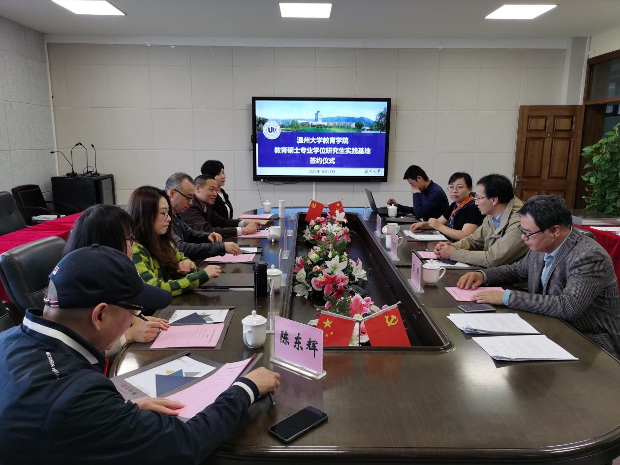 2021年10月21日早上9点,泥巴影院 在9A410举行教育硕士专业学位研究生实践基地签约仪式,此次签约也是泥巴影院 现代教育技术专业研究生教育实践基地首次进行的集体签约活动,参会人员为:泥巴影院 副院长王志强,现代教育技术应用专业教育硕士点负责人杨刚,教育技术学系硕导方建文,教育技术学系副主任赖文华,温州市实验小学副校长林彬,温州市南浦实验中学教务副主任刘荃,温州市南浦实验中学教育集团惠民路分校陈赛,温州市第二实验中学校长郭建昆,温州市第二实验中学郑煦,温州市实验小学办公室主任陈东辉。