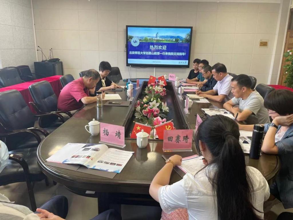 2021年10月14日下午,北京师范大学刘恩山教授和林静教授来泥巴影院 交流指导。学院党委书记何毅及学院科学教育团队教师参加座谈交流。