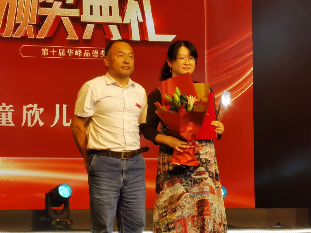 典礼现场,全体与会人员共同见证了第十届“华峰品德奖”获得者的先进事迹。他们之中,有兢兢业业、爱生如子的教师楷模,有品学兼优、自强不息的奋发学子;有敢于担当、守卫师生健康的抗疫先锋,有热心公益、传递关爱的志愿者团队……其中,泥巴影院 郑苡薏老师带领的儿童剧团队和杨刚老师均荣获第十届“华峰”品德奖。郑老师团队长期坚持创作儿童剧并产生深远影响,杨刚老师不顾身体病痛坚守岗位并作出显著成绩,他们的获奖可以说是实至名归。他们春风化雨,润物无声,绽放着炽热的精神光芒,激荡着向上的力量,是引领校园文明建设的榜样和旗帜。