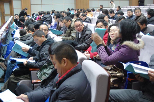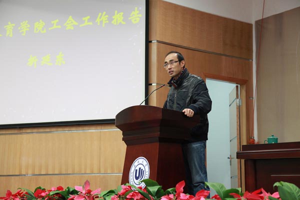 学院胡伟国书记主持大会的第一次会议。胡来林院长代表学院行政班子作主题为《聚精会神搞专业建设 一心一意谋学科发展》的工作报告。他对两年来的主要工作进行了回顾,从教学管理、人才建设、办学资源、专业建设、学科建设、学生工作、党建工作、教师教育基地建设等八个方面,向全体教职工汇报了所取得的成绩,他还就今后五年的工作目标和重点建设项目指标进行了深入的分析和解释,并提出具体的工作思路与主要措施,详细、务实的工作报告获得了全体教职工热烈的掌声。这热烈的掌声中,既包括对学院领导班级工作业绩的肯定,又深深蕴涵了对教师泥巴影院 今后发展目标的满怀信心。学院工会主席折延东同志在大会上作《以人为本 民主团结 促进学院和谐发展》的工会工作报告,他向大家汇报了学院工会参加学校各项工作和活动、组织学院教职工文娱活动、积极建设职工之家、积极关心教职工生活等有关情况;还对今后工会工作提出具体思路。在第一次全体会议后期,还进行了《教师泥巴影院 津贴分配方案(草案)》和本次会议提案情况的说明。