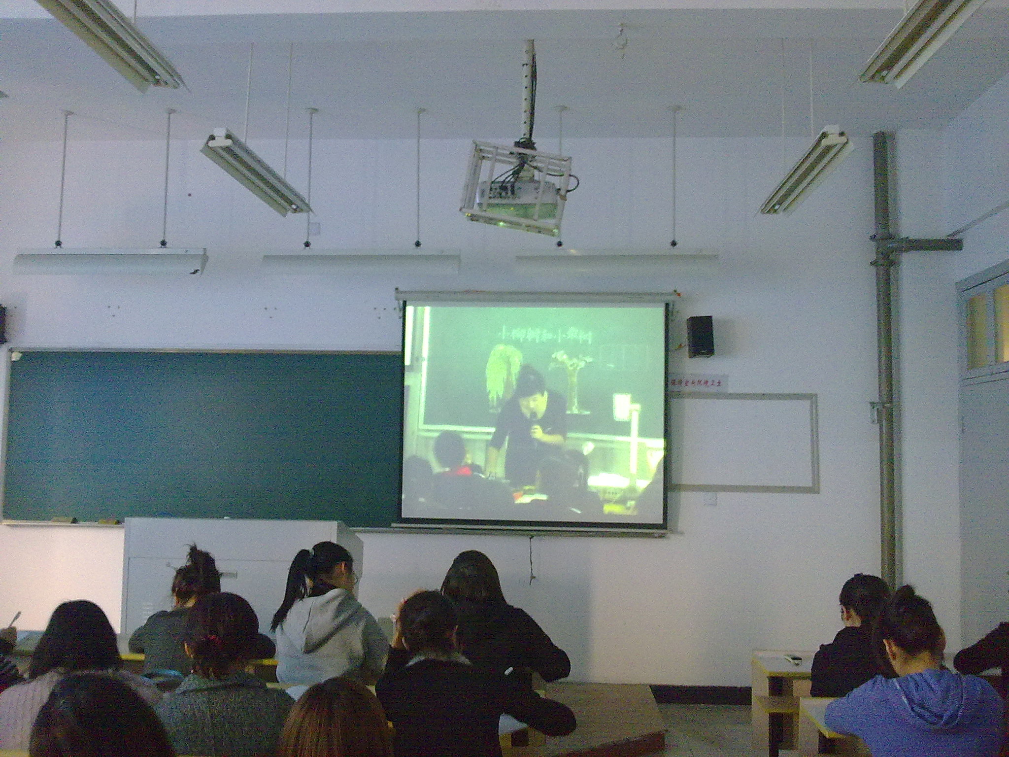 首先,缪老师从课文《小柳树和小枣树》的技能目标、认知目标和情感目标分析了她对该课文的理解,理出了课文的难点和重点:八个生字的教学和课文关键段的教学。同学们对《小柳树和小枣树》课文有了初步的教法印象之后,缪老师给大家放映了她获奖的上课录像。最后,她提出了教学反思,并和同学们互动,讲座气氛进入高潮。