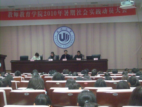 动员会上,2009年优秀社会实践队代表汤媛媛、李玮、方璐等3位同学作经验交流。她们分别从实践方案的设计、实践的准备过程、实践团队的构建与管理、时间成果册的制作等方面进行了深入的阐述,使在座的同学对暑期社会实践有了更深入的了解。