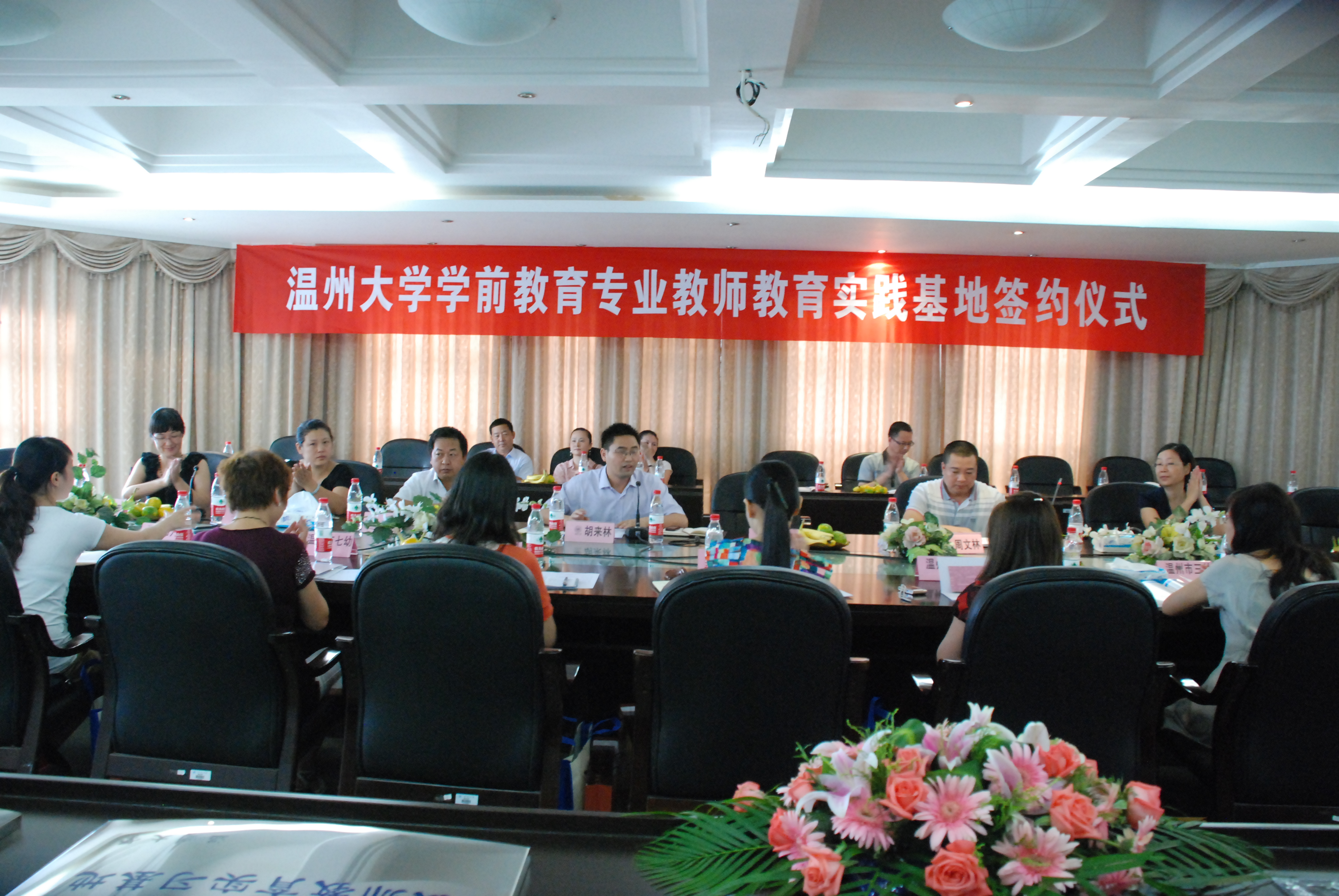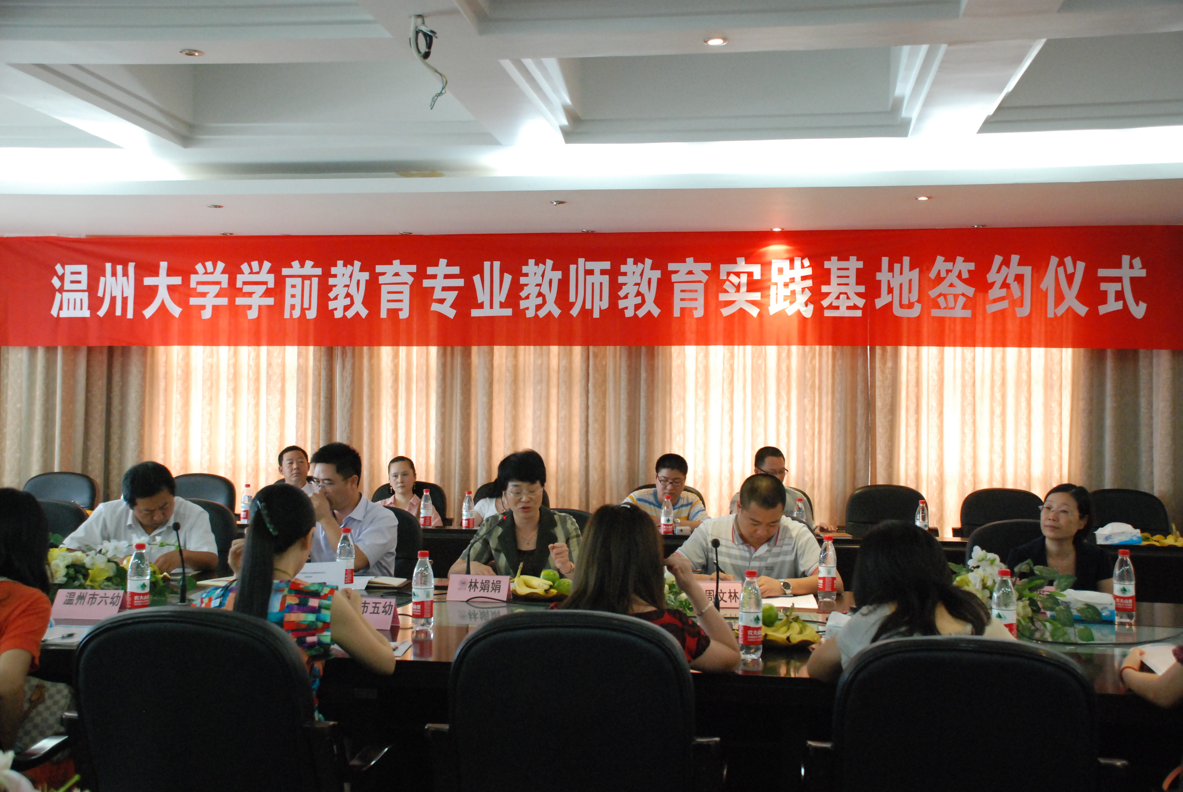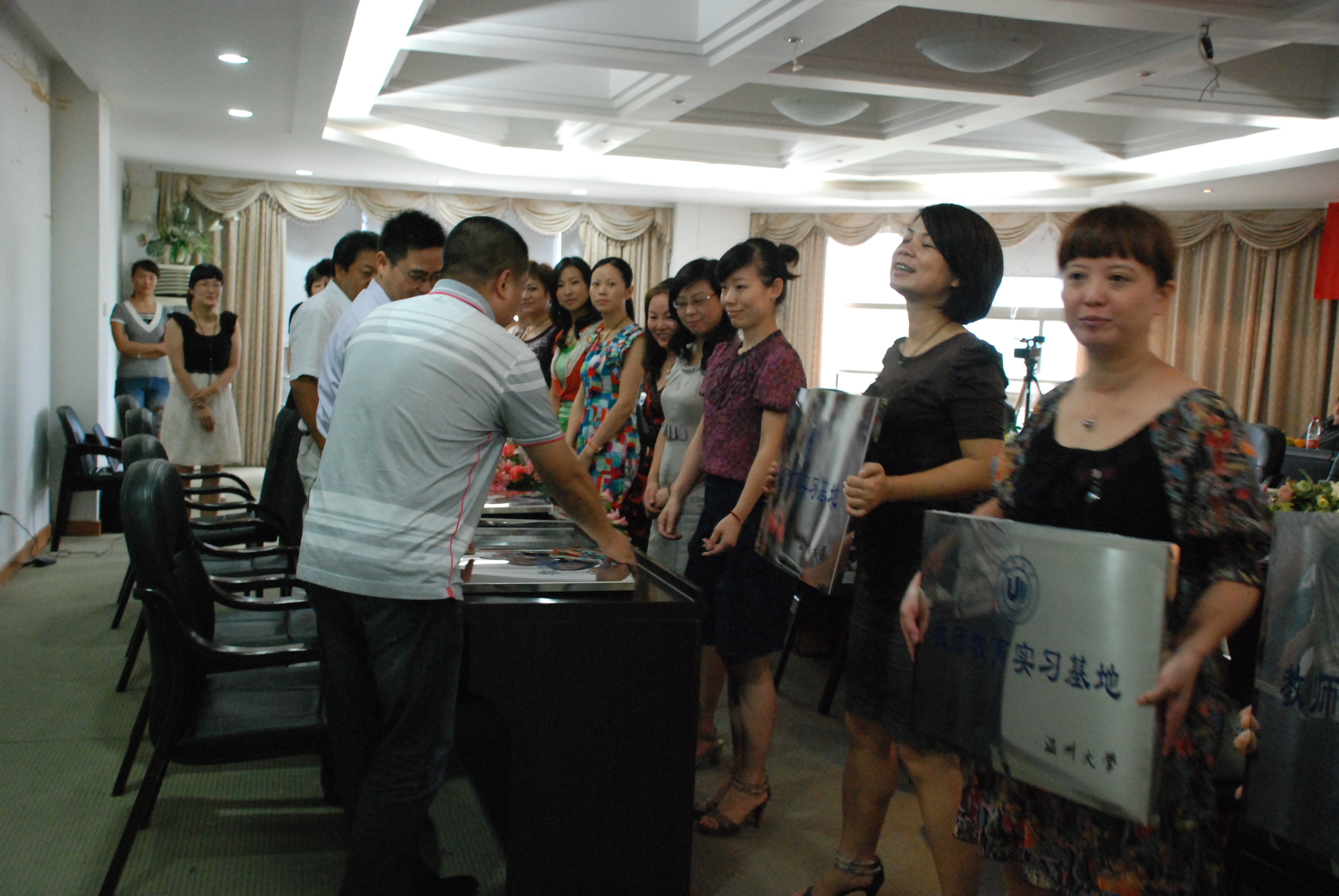 ,温州幼师并入成为温大的一个专业后,发展得到了学校的重视,在国家中长期教育改革和发展规划纲要(2010-2020)中,学前教育得到了国家空前的重视,在这个背景下,学校规范了学前教育专业的实践教学工作,规定温大学前教育专业的每位学生在校期间将不少于18周到相关幼儿园进行幼儿保育、情商开发、幼儿教学等方面的实践,提高自身的教学实践能力。最后,林书记对于鹿城区教育局对学前工作的支持表示了感谢,并希望与鹿城区幼儿园的合作更加深入规范,共创双赢。林书记发言结束后,为周文林副局长颁发了“服务地方工作特聘顾问”的聘书。
