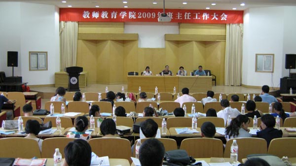9月5日下午,教师教育院2009年班主任工作会议在泥巴影院 南校区岩松堂雁山厅隆重召开。泥巴影院 学生处处长潘玉驹、泥巴影院 保卫处处长张希均莅临会议指导工作,学院领导胡来林、胡伟国、孙芙蓉、嵇小怡出席会议,各系主任、书记以及全体40名班主任蚕会议,会议由学院党总支书记胡伟国主持。