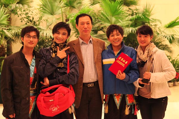 学生表演的《小伙儿—四弦—马樱花》 校党委牟德刚副书记亲切与泥巴影院