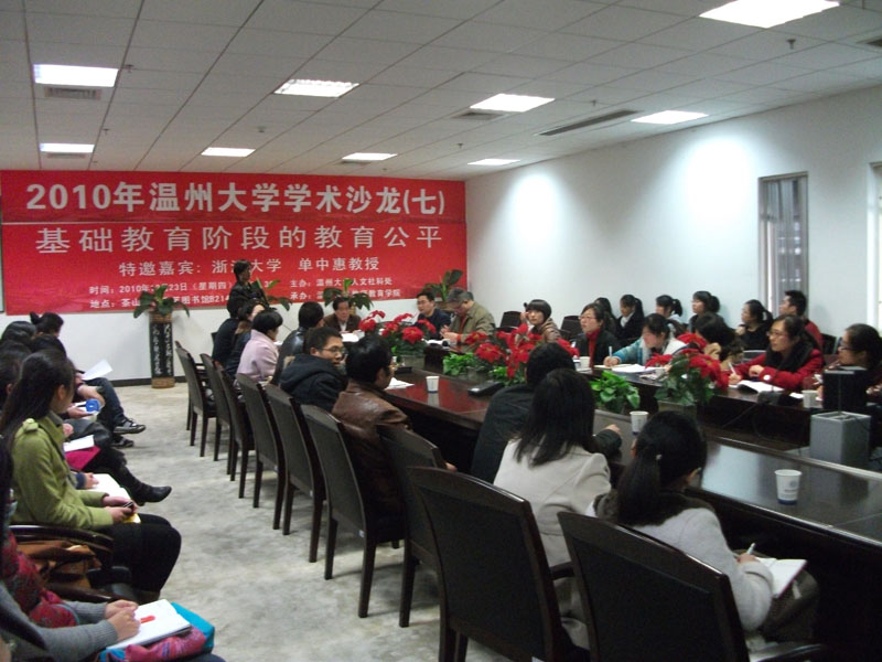 刘玉侠致欢迎词,表达了学校对此次活动的重视与期望。教育学系主任折延东做引题发言。在学术沙龙中,单中惠教授阐述了“对基础教育公平政策几个关系的思考”,并发表了自已的观点,认为我国当前教育公平的重点应该放在过程公平上,观点内容深入浅出,引起师生们的广泛共鸣。在最后的互动活题探讨阶段,学生们纷纷提出自已对该论题的疑惑与看法,引起了老师对话题的更进一步探讨,现场气氛非常活跃。