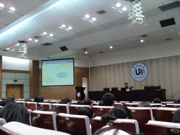 张老师特别介绍了《中国知识资源总库》。其资源是通过中国知识门户网站—“中国知网”来进行实时网络出版和信息服务。 其核心资源是CNKI系列数据库。并且数据库中的内容每日更新,每日新增数据上万条。但仅仅知道网站是不够的,张老师又向大家介绍如何检索自己需要的资源:跨库检索、当库检索、统一检索等等。知道如何控制检索范围,可提高信息检索的准确率和速度,能提高本科生学习效率。张老师还介绍了超星阅读器和读秀阅读器和获取书籍的一些技巧。