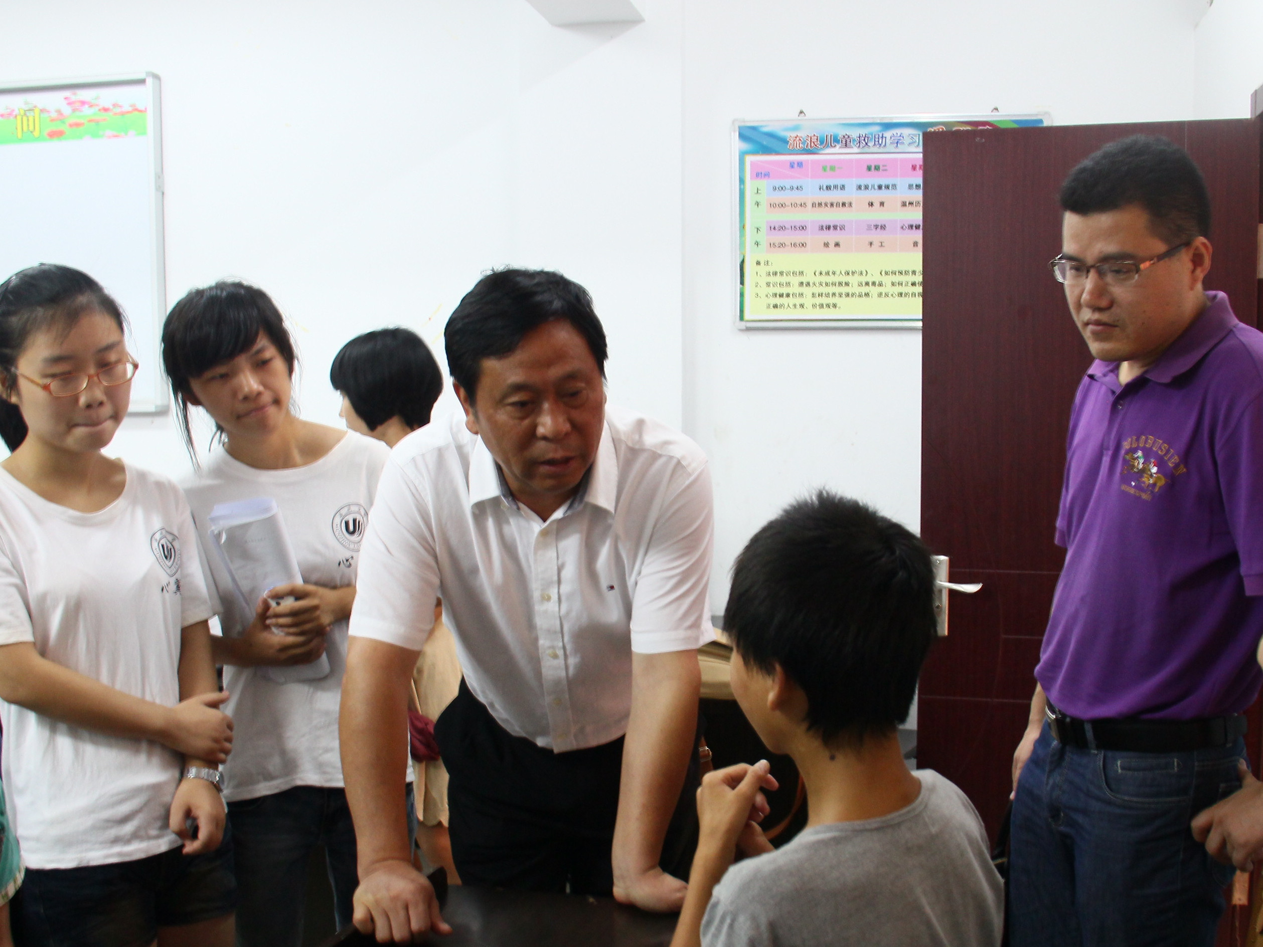 2013年7月15日,泥巴影院 “心翼”暑期实践队来到温州市救助站开始第九天的支教活动。9时许,泥巴影院 党委书记陈福生,校团委书记杨立淮,教师泥巴影院 党总支书记蔡联群等领导与其他老师一行莅临教师泥巴影院 “心翼”实践点——温州市救助管理站,亲切慰问“心翼”暑期社会实践队。