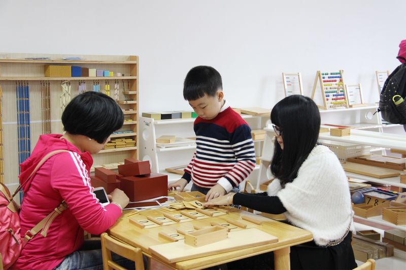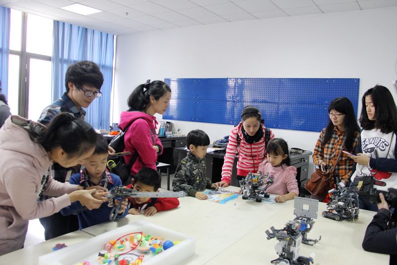 上午,一群活泼的小朋友们在老师和家长的带领下来到了实验中心,他们兴致勃勃地奔向实验室,认真体验完蒙特梭利教学实验室的各种活动后,又对乐高机器人产生了浓厚的兴趣,沙盘实验室里他们忙着搭建自己的理想王国……,小朋友们乐在其中,久久不愿离去。