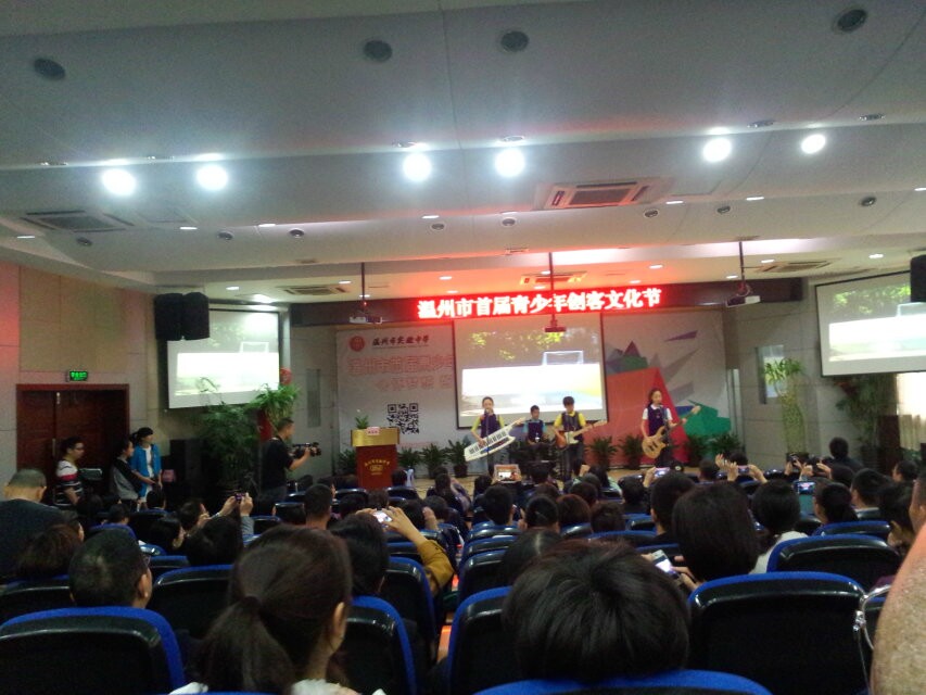 在开幕式上,温州市教育局副局长给温州实验中学授牌“温州市青少年创客基地”,宣告温州市青少年创客教育协会正式成立,泥巴影院
