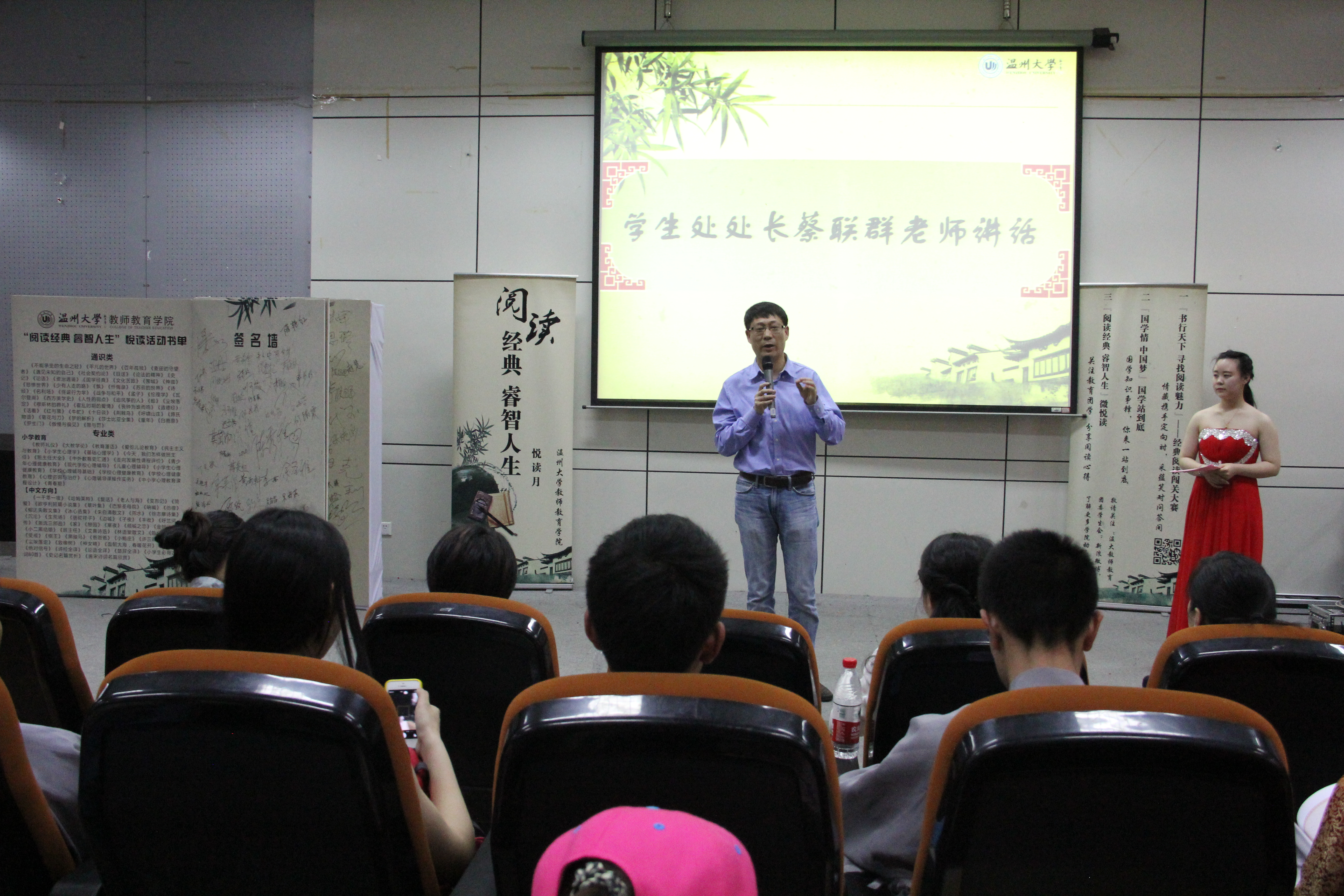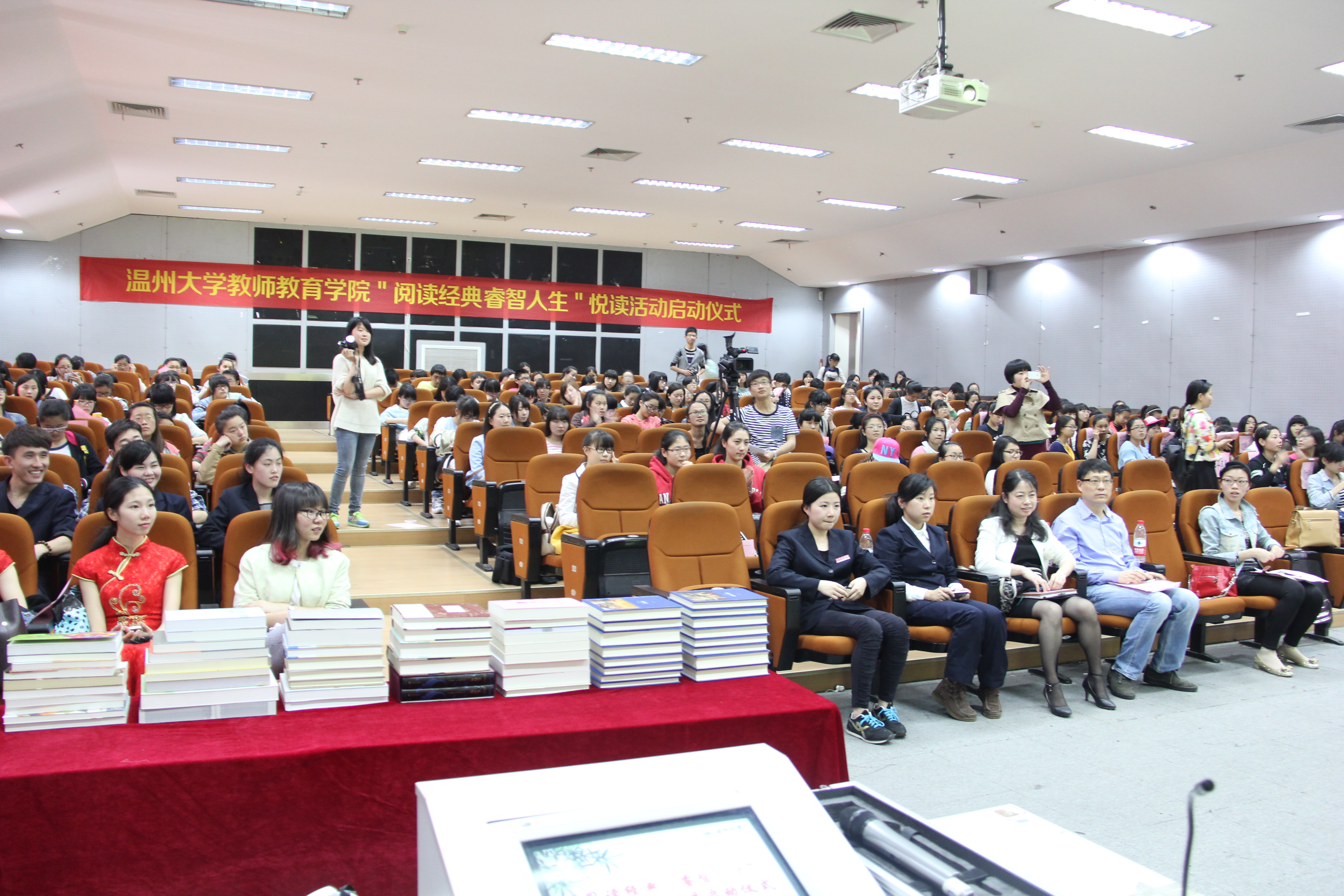 4月份即将引来2014年世界读书日。为了进一步打造泥巴影院 “教师教育”特色,推进“博 爱 雅 艺”师范气质培育计划的实施,4月16日下午在南校会展中心叶适厅,温大教师泥巴影院 启动“阅读经典 睿智人生”书香教育悦读活动。校学生处处长蔡联群老师、泥巴影院 党总支副书记嵇小怡老师等领导老师,温州书城的领导老师,及250余位学生参与此次活动。