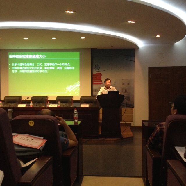 培训活动分为三个环节:专家讲座、操作示范以及实践操作。专家讲座中,王佑镁教授分析了微课领域国内外发展动态,详细阐释了微课的设计方法、开发技术、典型应用及案例。整个讲座形象、生动、直观,传递了微课制作与使用的前沿技术,激发了全体教师了解微课、制作微课、使用微课的热情。在操作示范环节,由付金灵和王志临两位研究生示范了使用录屏软件Camtasia Studio V8.1开发微课的录制、编辑、输出等操作;最后一个环节,是由教育信息化研究所全体研究生指导的实践操作,让各个老师实践体验录屏微课的开发任务。