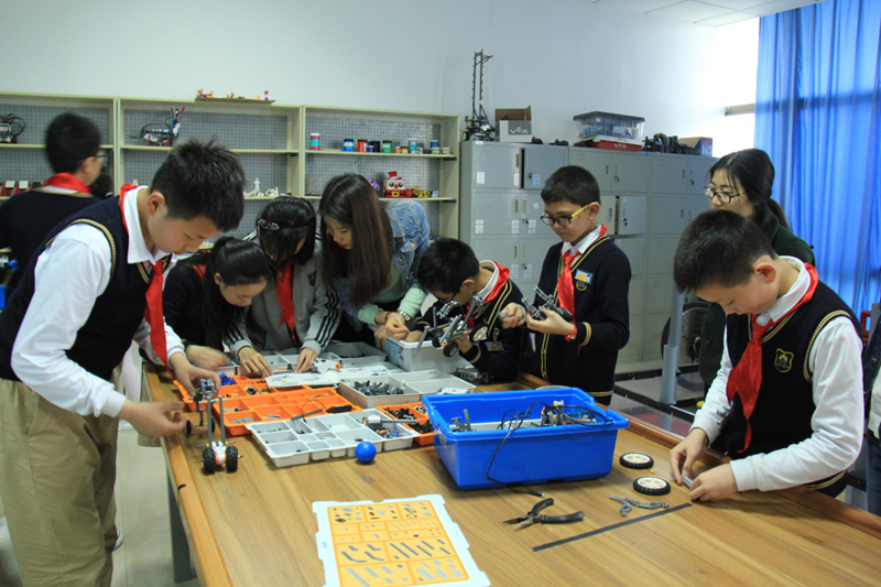我们先将小学生分成了四组,让这四组小学生同时在四个不同的实验室开展体验活动。在实验室里,小学生们认真听取各实验室负责老师的讲解,不时提出疑问,踊跃参与,或互动交流。在自然科学室里,他们观察显微镜下的神奇世界;机器人实验室里,他们体验了智能机器人夹取、移动、投篮等运作全过程;在未来课堂实验室,他们体验了先进的教学媒体在教学中的应用;在心理测量实验室,他们安静答题,测试自己的能力。整个活动十分愉快。直到下午3点半小学生们才离开。实验室开放活动有效地利用学校资源,让孩子们体验了各种实验教学仪器,激发了他们对科学知识的兴趣。