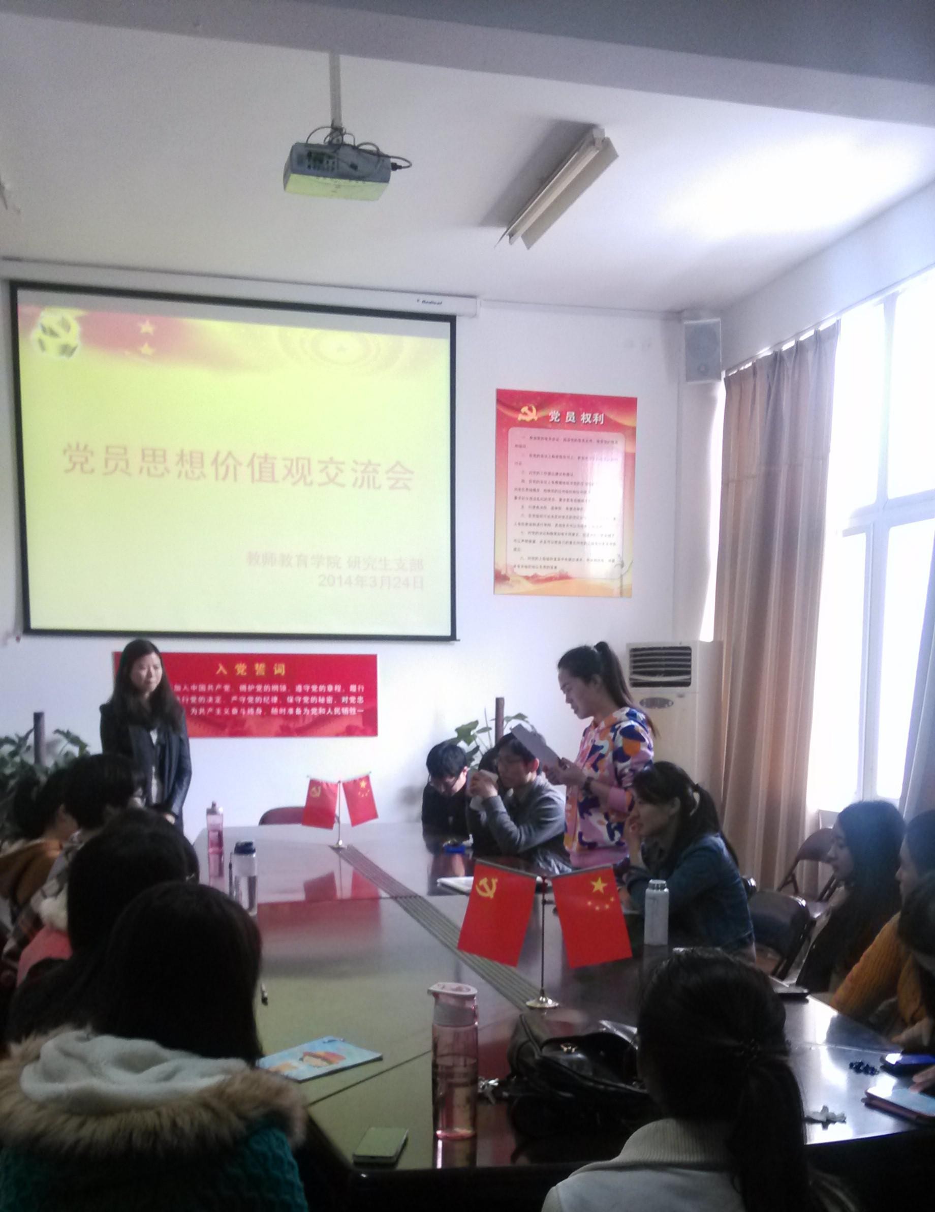 会议开始,部分党员同志对自己目前的学习生活与个人党性感悟做了交流,提出了自己的看法与一些困惑。其他党员针对该同学的生活汇报,也进行了热烈地讨论并热心地给予建议与帮助。在大家的交流中,不仅发言同志收获了新的认识,得到启示,也让其他党员同志认识到:党支部是一个积极、主动、热情、向上的团体。每一个成员在加入党组织后,都应不断完善充实自己,进一步学习,朝着党员标准不断努力。