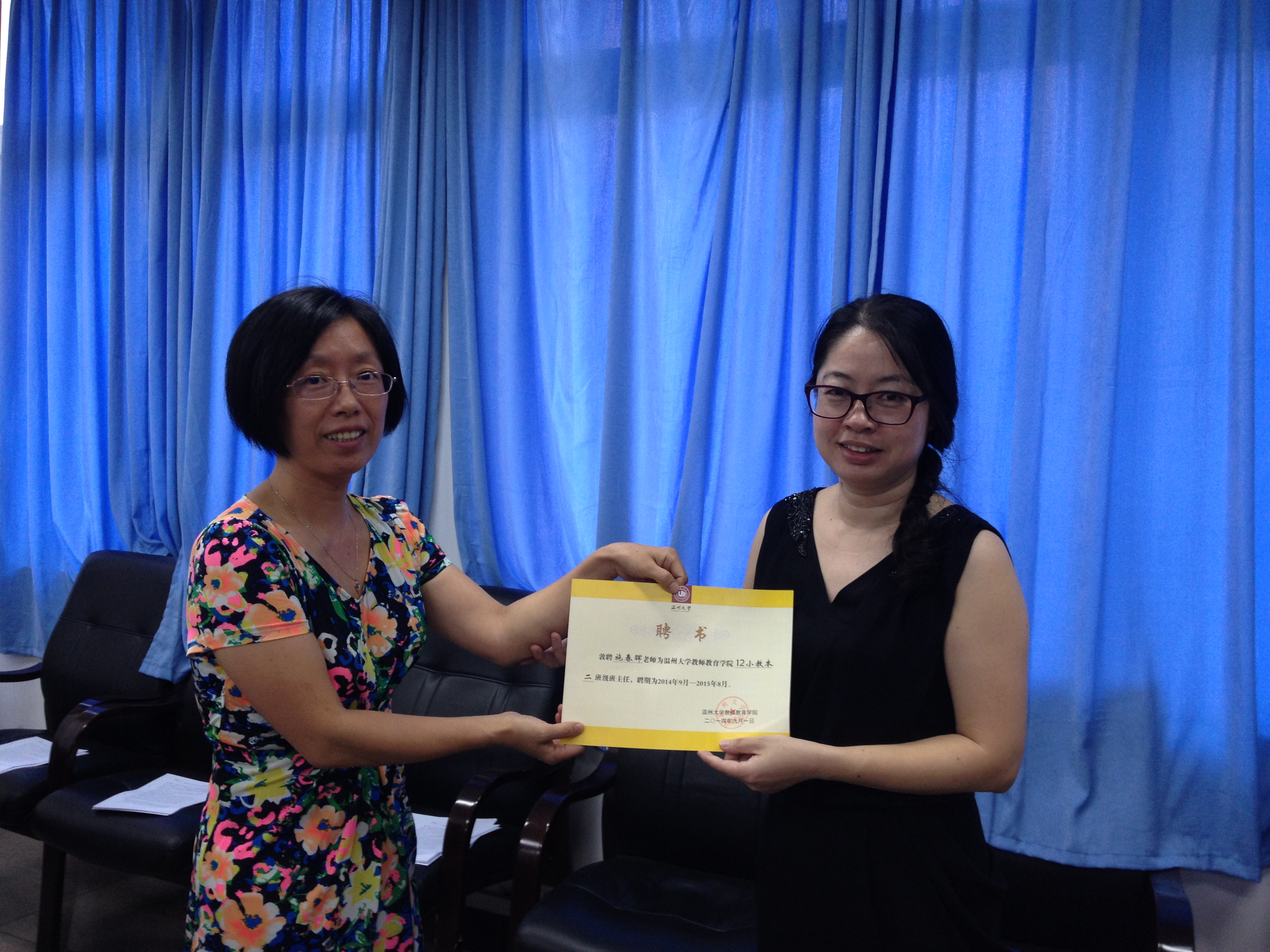 嵇小怡副书记做了总结发言。她高度肯定了泥巴影院 班主任老师们的工作,她引用今年教师节习近平同志在北师大师生代表座谈会上的讲话,“教育是一门‘仁而爱人’的事业,爱是教育的灵魂,没有爱就没有教育”来肯定班主任老师爱生、育人的辛勤付出,希望各位班主任老师能够继续把自己的满腔真情倾注于教育事业。最后,嵇小怡副书记为各班主任颁发聘书,再次体现了学院对班主任工作的重视与支持。
