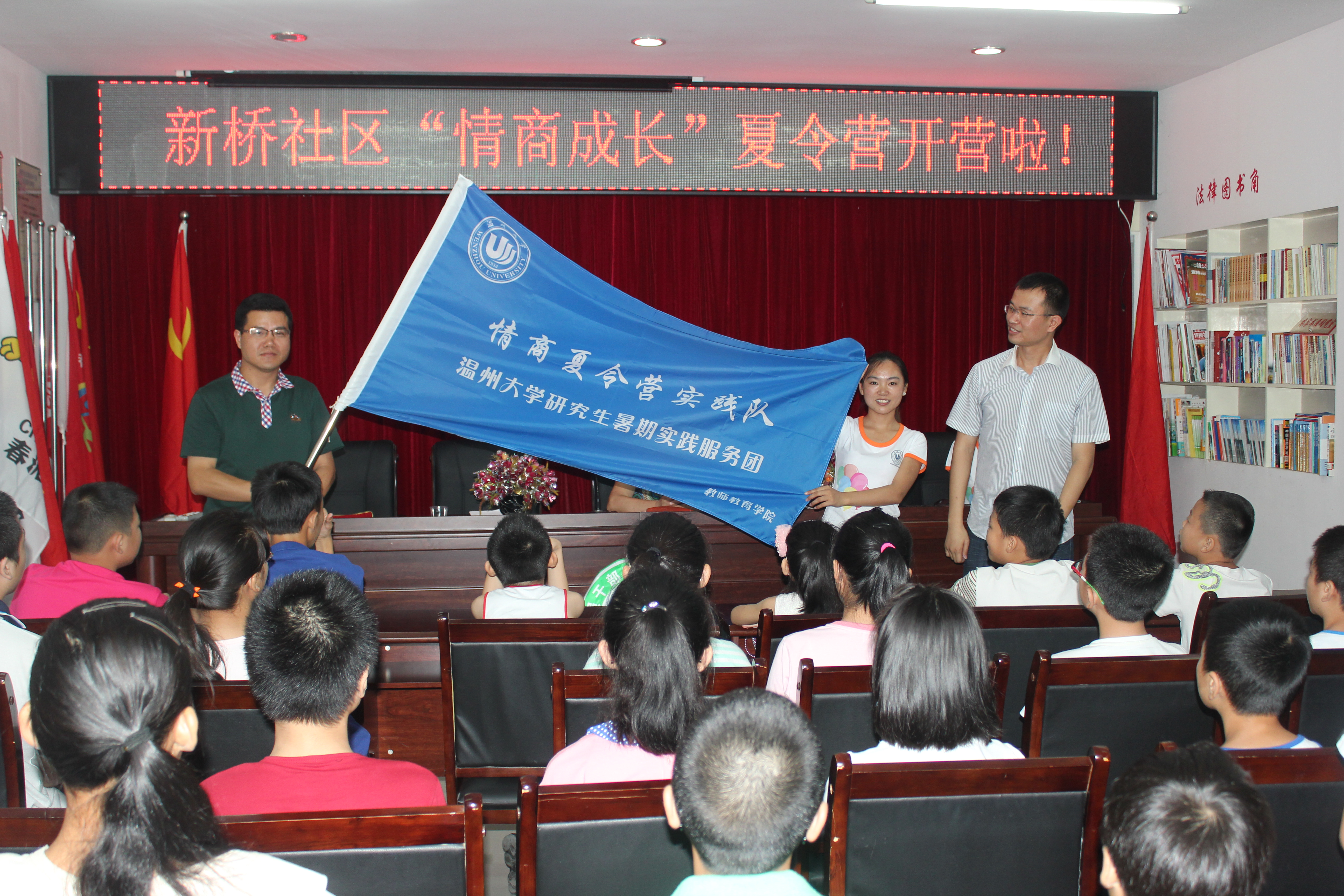 情商夏令营实践队和新桥社区共同主办的“情商成长夏令营”正式开营,团市委学少部部长池腾飞、新桥社区主任许信月、泥巴影院