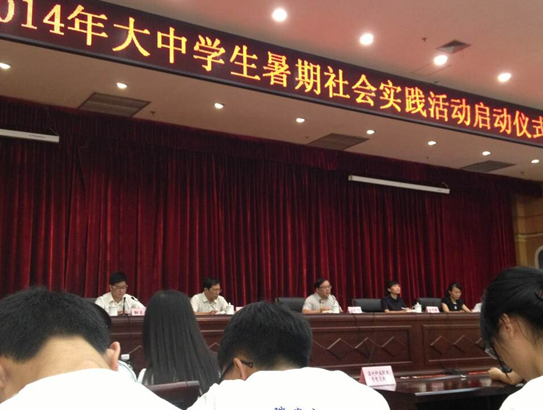 2014年7月8日下午三点,瑞安大中学生暑期社会实践队出征仪式在瑞安市政府大厅。瑞安市政府五位领导以及十五支实践队出席了此次仪式。