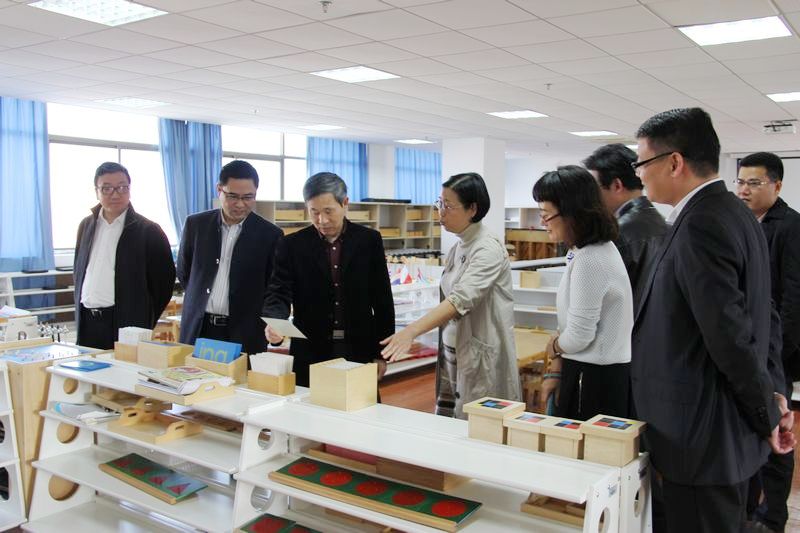 丁天乐副厅长一行依次考察了奥尔夫音乐教学法实验室、蒙特梭利教学实验室、书法教学实验室、基础心理学实验室以及信息化教学设计实验室,听取了孙芙蓉副院长、胡瑜副院长以及相关教师关于中心目前软硬件设备建设、实验教学的开展以及未来建设情况的汇报。考察过程中,丁天乐副厅长详细询问了各实验室的开放管理及实验教学情况,并与学生进行了深切的交流,得知同学们借助中心实验室平台验证了专业知识,扎实了专业技能,提升了师范素养和实践操作能力,他欣慰地点点头。