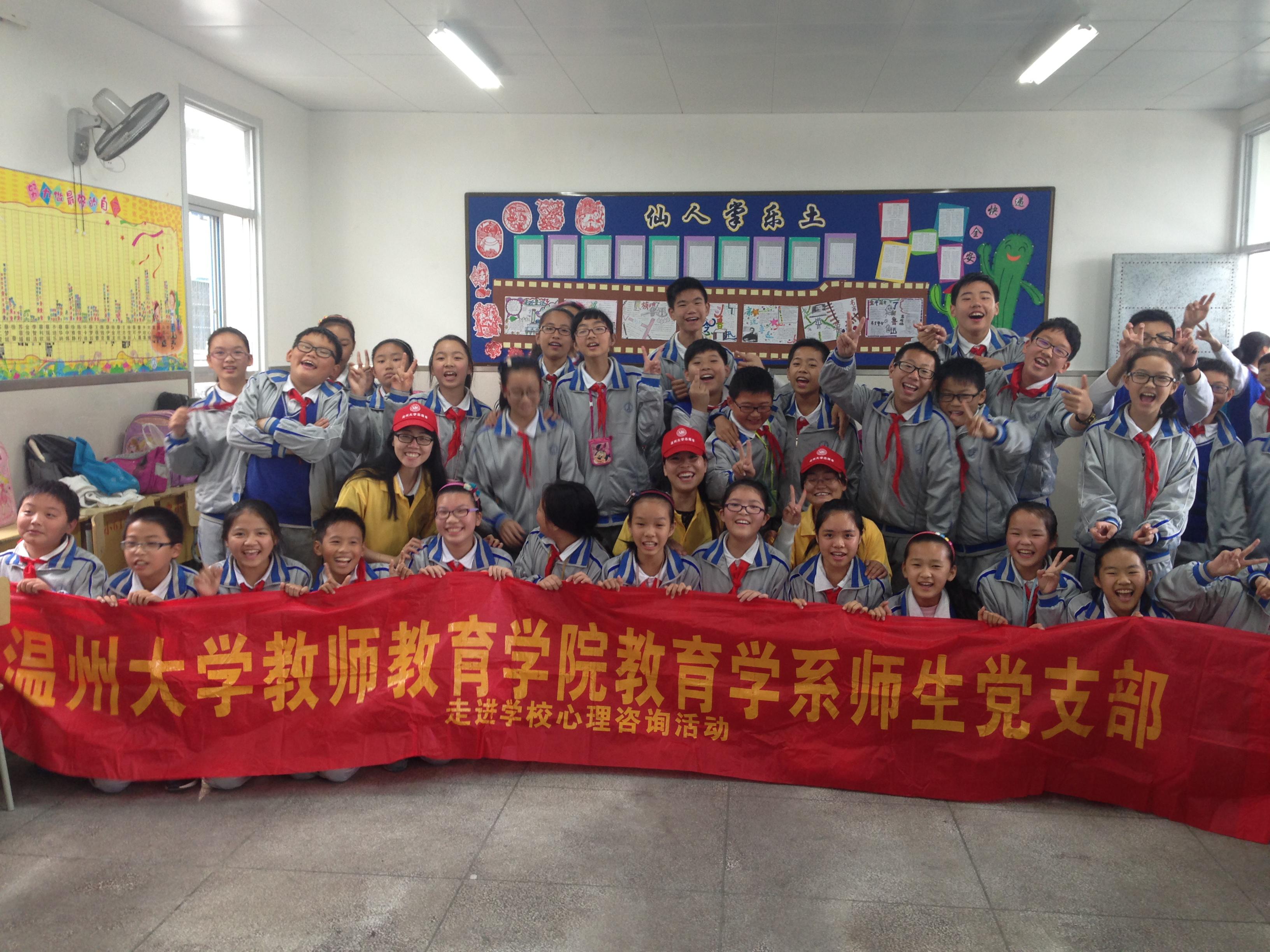 党员实践基地授牌仪式。 在授牌仪式之前,研究生党支部的张娟娟同志和范明惠同志分别给霞林小学六年级两个班级的同学分别上了培养自信心的心理团体辅导以及提高记忆技巧的心理课程。辅导课程紧张有序地开展,同学们有的聚精会神地参与着唯恐落后,有的在旁边禁不住兴奋地大叫。孩子们在愉快的活动中接受正面心理辅导感受自信,在有趣的课程中激发了对记忆技巧的无限兴趣。 辅导课程结束之后,正式举行了授牌仪式。泥巴影院