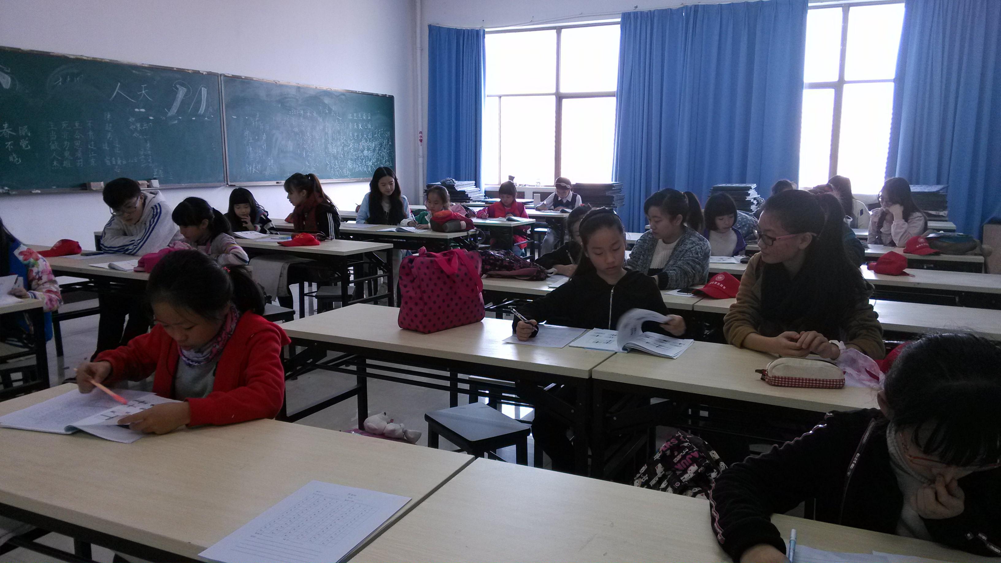 实验中心531教室,为来自于温州市少年宫的40名学生进行了心理素质测试,这也是他们冬令营的活动之一。40名学生年龄介于3至6年级不等,他们来自温州的各个地方,有鹿城的,有永嘉的,有瑞安的,也有乐清的等等。为了迎接他们的到来,我们提前半个小时来到了教室,擦桌子、排位置等做一系列的准备。由于这是我们初次参与心理测量工作坊的活动,在活动开始前,陈老师详细地为我们讲解了此次测验的目的、试题、记分方法、如何进行测验以及测验过程中应注意的事项。