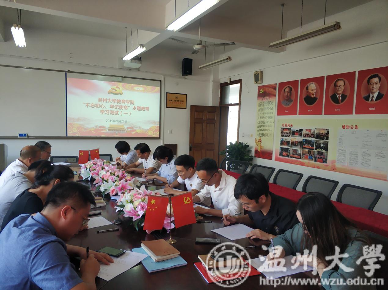 为了解“不忘初心、牢记使命”主题教育开展以来教工党员理论自学成效,增强党员干部理论学习的主动性和积极性,9月26日中午,泥巴影院 党委组织行政支部党员进行“不忘初心、牢记使命”主题教育理论学习情况第一次闭卷测试,包括学院书记、副书记在内的全体行政支部教工党员参加测试。