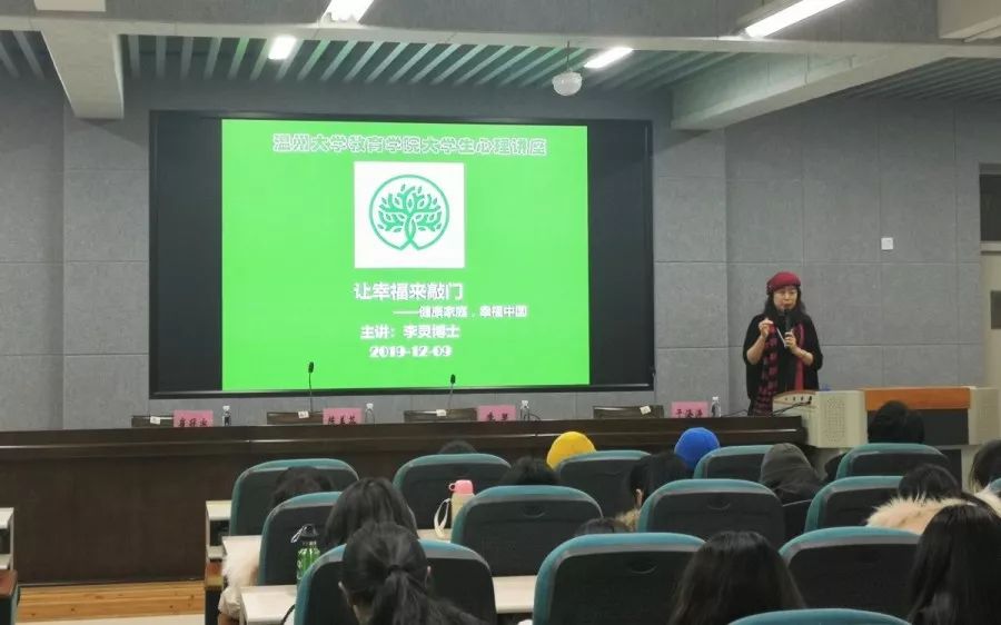 12月9日晚,泥巴影院 于9C301开展了《让幸福来敲门——原生家庭及其对亲密关系的影响》主题讲座,主讲人为辽宁师范大学李灵博士,莅临讲座的还有心理学系党支部书记陈美芬、心理学系主任于海涛和心理学系副主任崔冠宇。本次讲座由于海涛老师主持。