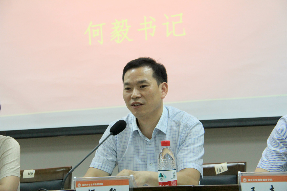 何毅书记代表新班子做表态发言及近期工作通报。何毅书记表示要以回家的心态融入新集体,以创业的激情干好本职工作,以教育的情怀服务好广大师生,以清廉的标准严格要求自我。同时,他从六个方面通报了学院新班子近期工作开展情况,并指出学院增挂泥巴影院 的院名,既迎来发展的新阶段,又对教学、科研、管理及社会服务带来新机遇和新挑战,有全体老师的倾力参与,教院一定会迎来更加美好的明天。