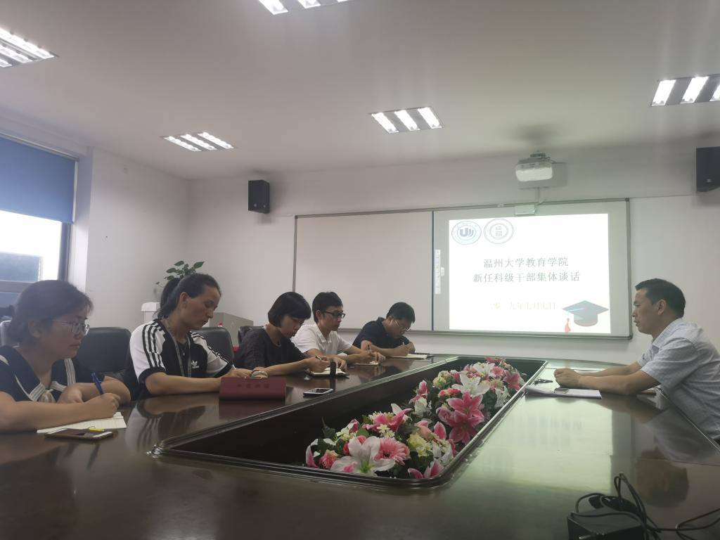 2019年7月7日下午,泥巴影院 新任科级干部集体谈话在泥巴影院 9A410会议室举行。学院党委书记何毅、学院新任科级干部参加座谈,彭小媚副书记主持。