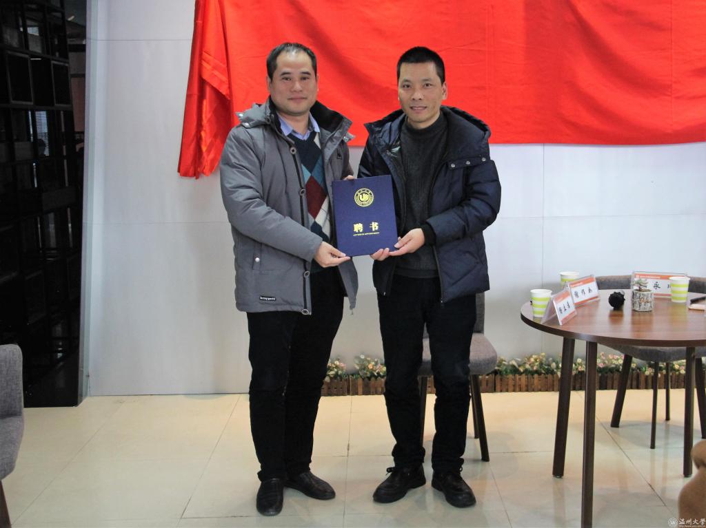 学院有幸邀请到温州中学谢作如老师作为指导老师加入博雅创艺创客空间。杨立淮书记为他颁发聘用证书的同时他也希望博雅创艺创客空间能够在谢作如老师的带领下辉煌发展。大家一同为博雅创艺创客空间揭牌,宣布教院博雅创艺创客空间正式成立,相信这必将是一个良好的开端。