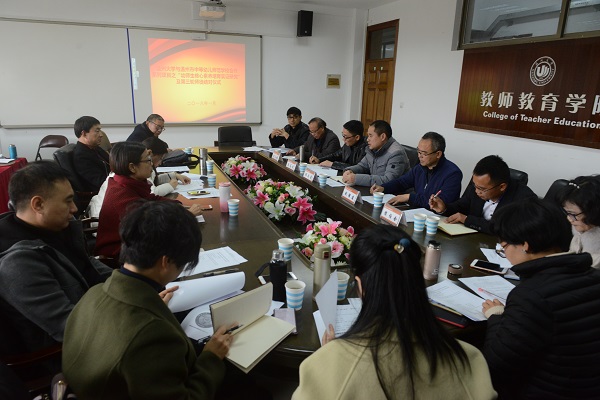 泥巴影院 教师泥巴影院 与温州市中等幼儿师范学校合作系列项目之“幼师生核心素养培育实证研究”及第三轮师徒结对会议于2018年1月3日在南校9号楼410会议室召开。会议由副院长彭小明教授主持。泥巴影院 党委书记杨立淮、教育系主任折延东教授、学前系书记杨婧副教授、赵雷教授、林炎琴副教授、温州市中等幼儿师范学校校长蒋高烈、副校长戚强建、副书记侯伯念等30多位领导、教师参加会议。
