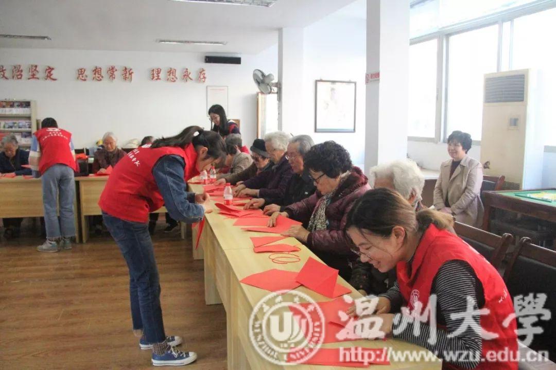 活动伊始,志愿者们提起毛笔,在红色宣纸上写下“民富国强万物盛,人和家兴百业昌”的祝语,将对老人新一年的祝愿同中国传统文化相结合。红纸黑字满是教院学子对老人们的热情关切,老人们的夸奖中也饱含着对青少年的殷切希望,对祖国改革未来的美好期待。“心中想说千句话,万望你梁兄早点来。”志愿者们为老人们带来的是越剧《十八相送》。不少老人跟着音乐,轻叩手指,浅浅吟唱。一曲毕,掌声雷动,优美的唱腔萦绕在耳畔,久久不散。火红灯笼也是传统节日必不可少的点缀。“奶奶,这个地方再剪一刀,然后往里面弯一下……”老人在志愿者的陪伴下,共同参加手工制作灯笼活动。当六个小部件拼成完整的灯笼时,不论是志愿者还是老人,脸上都洋溢着幸福的笑容。在冬至节气中,来到军分区。捧一碗热热的糯米汤圆,执笔写下新春祝福,低吟一曲熟悉的《十八相送》,亲制一盏红红纸灯,将冬至之传统与红色革命相结合,为曾经意气风发的老人们共奏一曲岁月的赞歌,让敬老爱老服务社会的火热驱散冬日的严寒。
