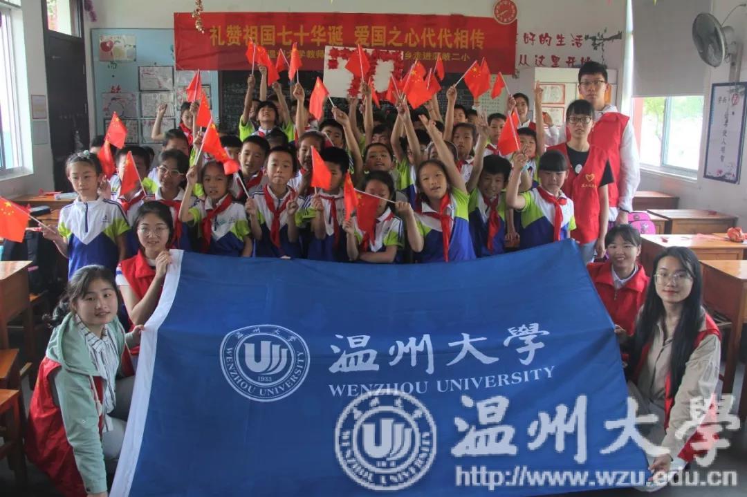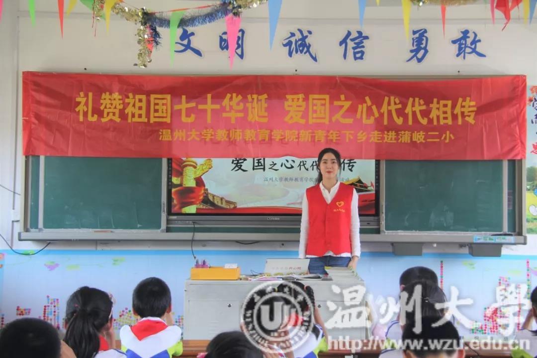致敬新时代,中华人民共和国成立七十周年。5月29日下午,泥巴影院 教师泥巴影院 的志愿者们前往乐清市蒲岐二小开展了以"礼赞中华人民共和国成立七十周年,爱国之心代代相传"为主题的新青年下乡活动。志愿者们通过故事宣讲、手工制作、歌曲教授,将爱国情怀传递给孩子们,激发他们的爱国之心和报国之心。