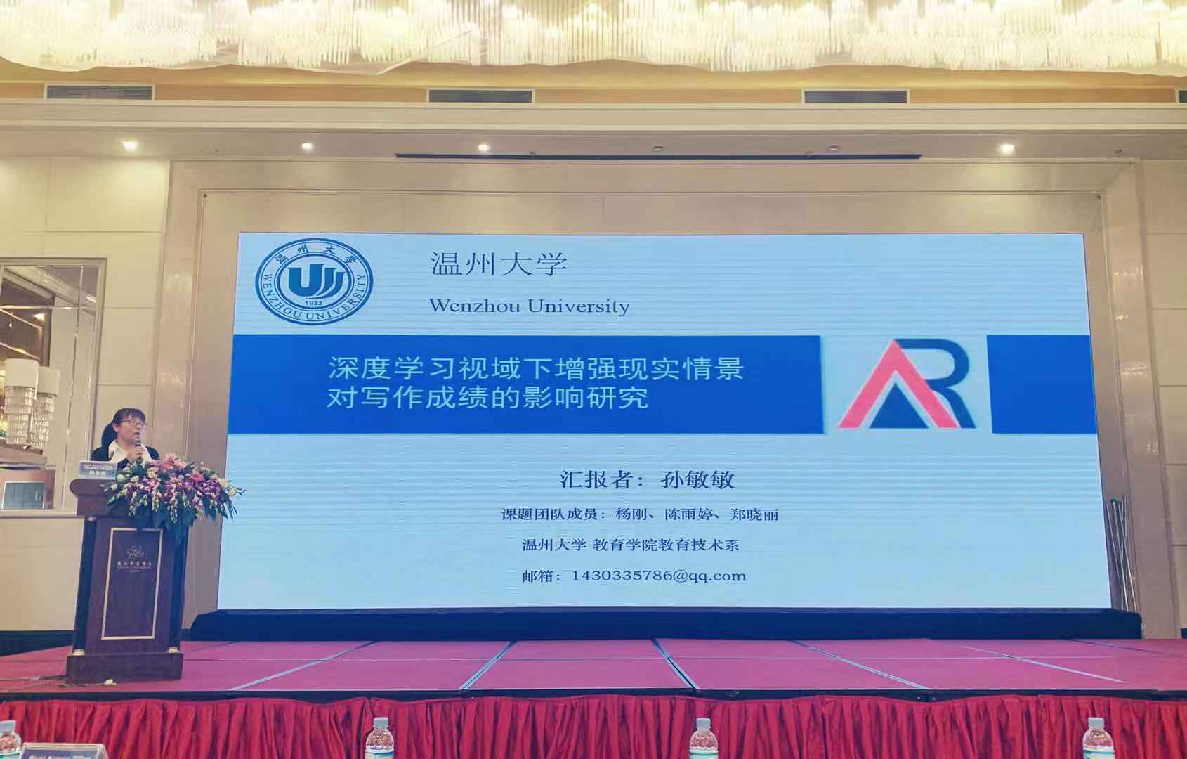 本次论坛中,泥巴影院 2018级硕士研究生孙敏敏撰写的论文《深度学习视域下增强现实情景对写作成绩的影响研究》荣获优秀论文二等奖,并受邀在分论坛作主题发言。泥巴影院 研究生参与这届国际学术论坛,不仅是展示泥巴影院 研究生学术水平的有效途径,也是对泥巴影院 研究生培养质量的充分肯定,相信未来泥巴影院 会有越来越多研究生的身影出现在国际学术论坛报告中。另外,泥巴影院 教育系主任杨刚老师作为嘉宾受邀参加此次会议及主持分论坛会议,同时,作为与会代表在闭幕式上发言。这次会议不仅是泥巴影院 教育技术师生与同领域研究者进行交流与分享,另一方面也提升泥巴影院 教育技术专业在该领域的影响力,并发出了温大的“好声音”。
