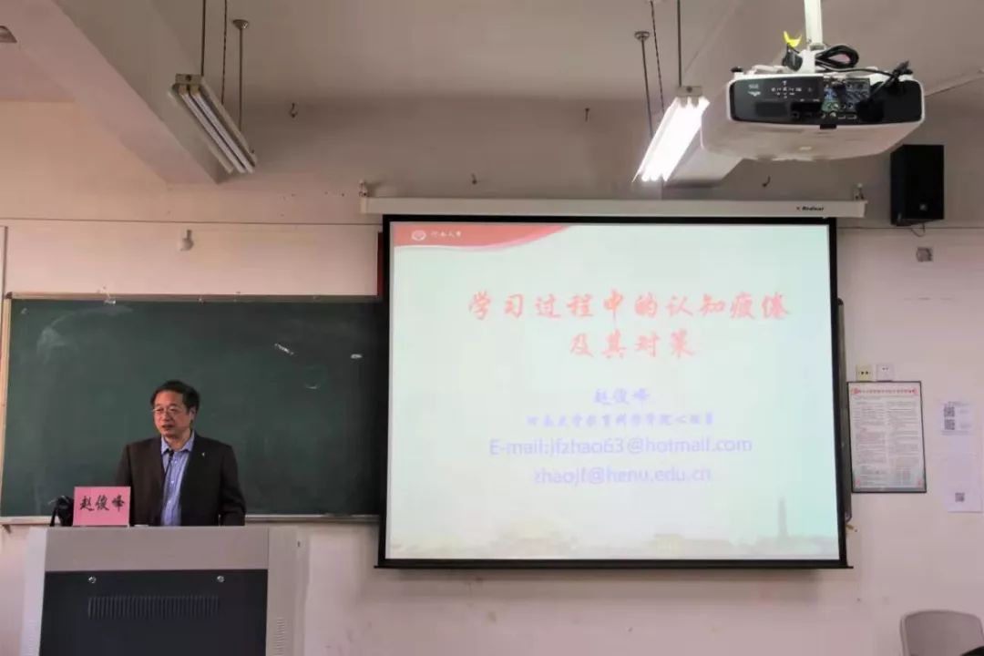 为充实泥巴影院 应用心理学系学子的专业学识,帮助应对学习过程中认知疲倦等问题,10月30日下午,泥巴影院 于9B301开展了《学习过程中的认知疲倦及其对策》专题讲座。讲座由河南大学教授赵俊峰主讲,出席本次讲座的有泥巴影院 心理学系副主任崔冠宇、心理学系教授徐速,到场的还有泥巴影院 教育学及心理学专业的研究生和本科生。本次讲座由泥巴影院 王志强副院长主持。
