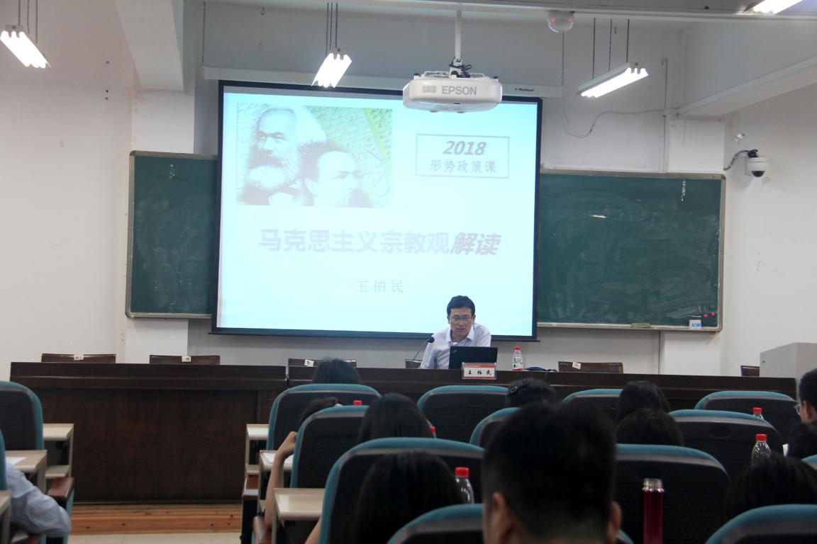 王柏民书记作“马克思主义宗教观解读”主题报告。在报告中,他系统阐述了马克思主义宗教的基本观点,马克思、恩格斯运用辩证唯物主义和历史唯物主义观察分析宗教现象和宗教问题,创立了马克思主义宗教观,为马克思主义政党正确认识和处理宗教问题提供了理论基础。同时,他介绍了我国宗教的基本情况,并指出我们党坚持把马克思主义宗教观基本原理同中国革命、建设和改革中的宗教实际和时代特征相结合,形成了中国特色社会主义宗教理论。他指出,2016年4月,习近平同志在全国宗教工作会议上发表重要讲话,深刻阐述了我国宗教工作的重大理论和实践问题,提出了一系列新思想新要求,丰富和发展了马克思主义宗教观,是中国特色社会主义宗教理论的重要文献,是做好新形势下宗教工作的行动指南。他还解读了2017年8月国务院颁布的《宗教事务条例》。