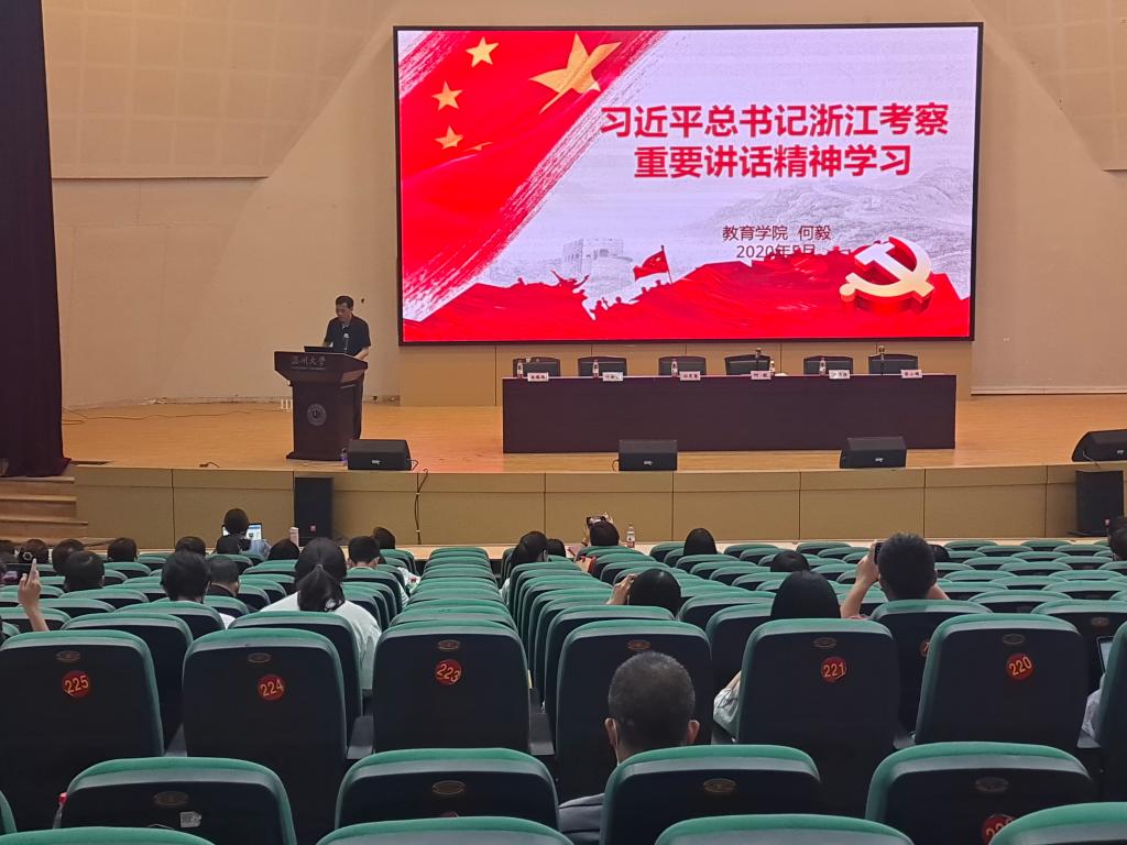 5月27日下午,泥巴影院 教职工理论学习会在泥巴影院 一楼报告厅举行,学院全体教职工参加大会,党委书记何毅讲专题党课——习近平总书记浙江考察重要讲话精神学习。