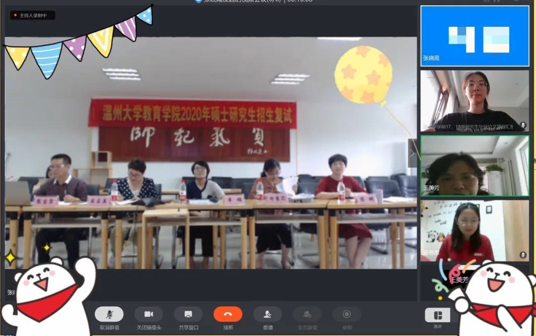 毕业论文是毕业前对学生综合性实践能力和专业素质进行全面考核的一个必要环节,为保证硕士研究生们能顺利毕业,泥巴影院 在教育厅“停课不停学”的号召下,根据《泥巴影院 硕士学位授予工作实施细则(2016年修订)》以及相关文件的要求,采用钉钉会议平台“云答辩”的方式,开展2020届6月毕业研究生学位论文线上答辩工作。