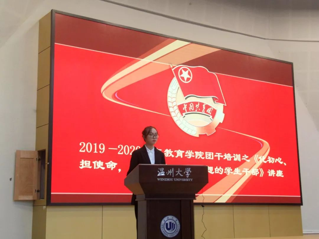中国共产主义青年团是中国共产党领导的先进青年的群团组织,其开拓奋进、锐意创新的时代风貌与团员们有着密不可分的联系。教院团委学生会组织部副部长谢灿莉向大家介绍了共青团性质、团旗、团徽等基本内容,丰富了大家的团学知识。随后,她细致介绍了团干培训学员手册的填写标准。此外,她针对团委学生会的六个中心一一展开了介绍,帮助大家了解其他各部门的工作和职责。