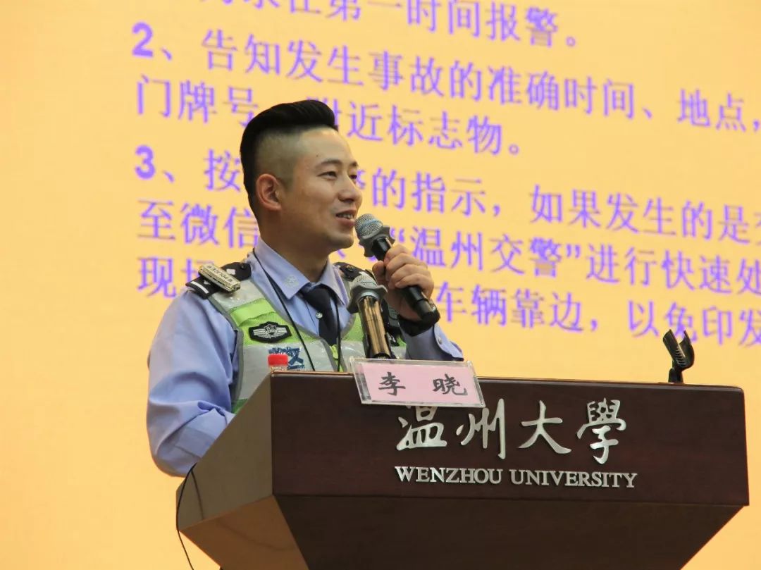 为增强学生交通安全意识,创造和谐平安校园,10月23日下午,由泥巴影院 保卫处主办、泥巴影院 承办的“平安温大大讲堂第二讲”于教院一楼报告厅举行。温州市四大队八中队茶山责任区警长李晓为同学们带来主题为“大学生交通安全常识与预防”教育讲座。出席本次讲座的有校保卫处副处长钱合激老师及校保卫处综合科科长陈琪老师。