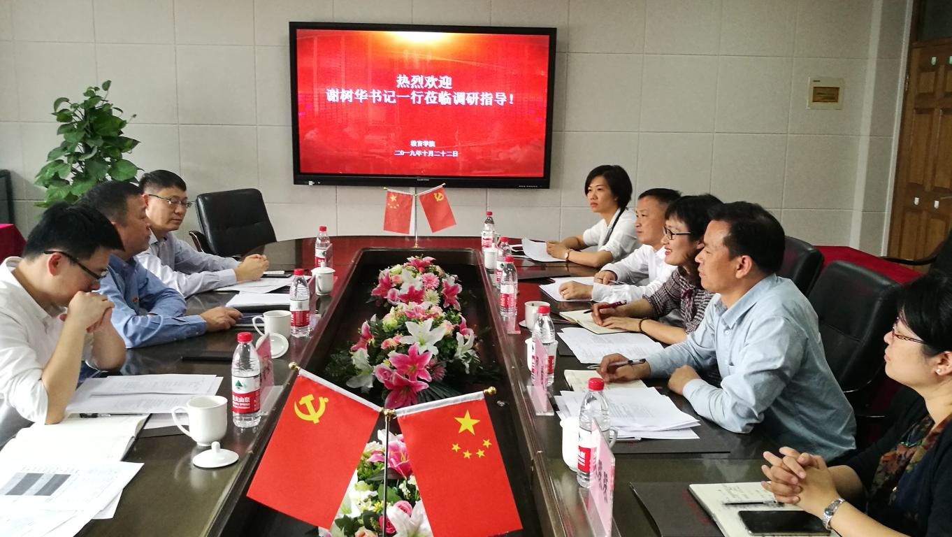 2019年10月22日下午,校党委书记谢树华、校办主任蔡联群、校办督办科科长陈赞安一行来泥巴影院 开展申博工作调研。学院院长孙芙蓉、党委书记何毅、副院长叶新东、王志强、林琛琛、党委副书记彭小媚参加了此次会议。