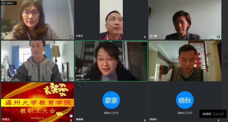 孙芙蓉院长以锚定“1357”,奋进2020为主题,强调抗疫发展两手抓,立足新目标新定位,泥巴影院 可以大有作为,也必须大有作为,亟需担起学校的担子,形成“人人有责,人人担责,人人尽责”的良好格局。她提出“非常时期要顶牢,常态工作要守好,重点工作要趁早”,在疫情防控和学院发展面前,要全员动员、全员参与、全员行动,确保学前专业认证进点、心理学申硕、研究生复试、学前专业招生等阶段性重要工作不停滞、不懈怠,力争教院工作再上一个台阶。