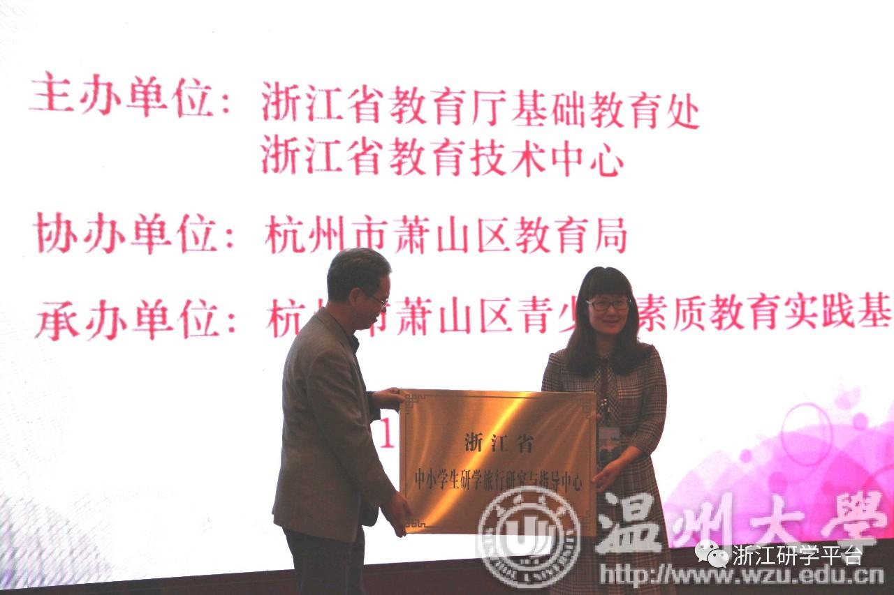 会议初始,浙江省教育厅基础教育处处长方红峰、杭州市萧山区教育局副局长吴金炉出席仪式并分别发表了致辞。处长方红峰从研学旅行的价值认识、建立联动机制、加强基础建设、完善制度安排四个方面发表讲话。 萧山区教育局副局长吴金炉指出,研学旅行的开展一定要依托教育实践基地,重视研学旅行的课程建设、导师培训以及平台开发。接着,方红峰处长为泥巴影院 “浙江省中小学生研学旅行研究与指导中心”授牌,泥巴影院 教师泥巴影院 院长孙芙蓉作为中心主任代表泥巴影院 上台接牌。