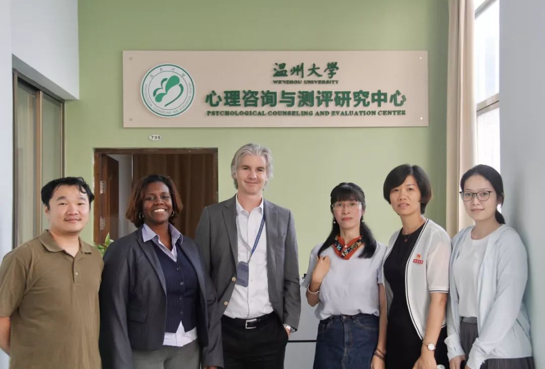 我校学校心理咨询与测评研究中心是一个集心理咨询教学、个案研究、服务应用为一体的专业机构。为了加强双方心理健康教育工作的交流与合作,10月18日下午,温州肯恩大学人文学院院长Raquel、教师Jonathan、助教徐萌璐一行莅临我校心理咨询与测评研究中心进行参观访问,泥巴影院 党委副书记彭小媚、心理咨询与测评研究中心执行主任陈美芬副教授、心理系陈宥辛博士、学工办辅导员侯利兵陪同介绍并进行深入交流。