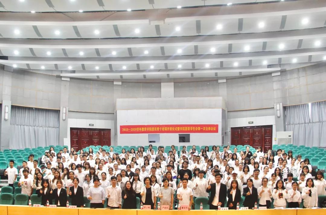为增强团学成员团员意识,提升团学凝聚力,2019年10月18日,泥巴影院 团员骨干培训开班仪式暨学院团委学生会第一次全体会议于九号楼报告厅召开。