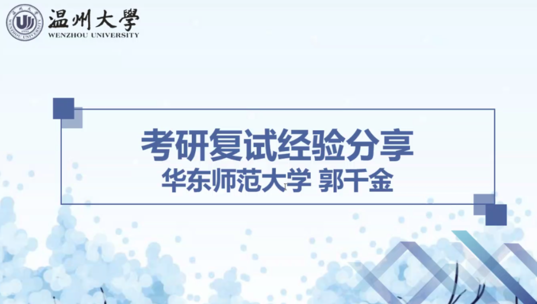 为坚定学生考研决心,提升学生考研竞争力,教院于4月2日晚在腾讯会议举办“考研讲堂”。参加本次考研讲堂的有学院学工办辅导员潘士杰老师,并特别邀请了泥巴影院 学前教育专业毕业生、现华东师大研究生郭千金,学院小学教育毕业生、现浙师大研究生洪璟做经验分享交流,到场的还有学前教育与小学教育专业的学生。本次分享会由潘士杰老师主持。