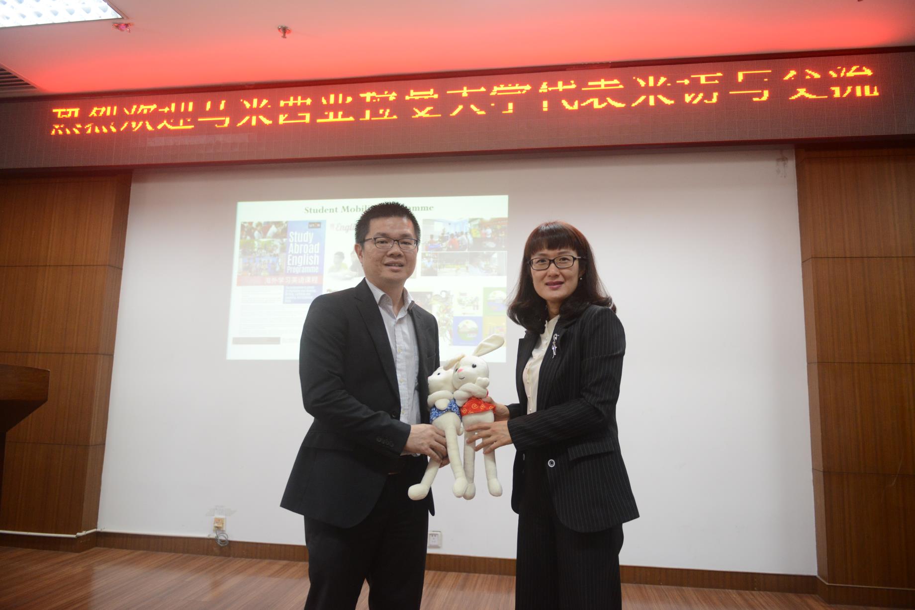 2018年11月30日上午9:30,马来西亚拉曼大学国际处处长Dr. Lai Soon Onn来泥巴影院 洽谈国际教育合作事项,并参观了泥巴影院 教师教育实验中心。学院领导孙芙蓉院长、潘玉进副院长、院长助理杨刚博士以及各系主任、骨干教师在岩松堂展示厅出席并召开了这次会议。会后,院长孙芙蓉教授代表学院向马来西亚拉曼大学国际处处长Dr. Lai Soon Onn赠送礼物,并集体合影。
