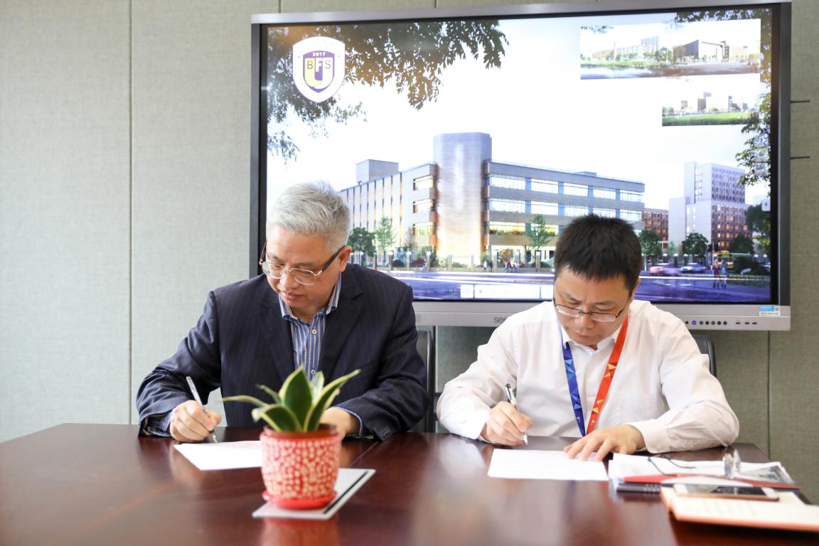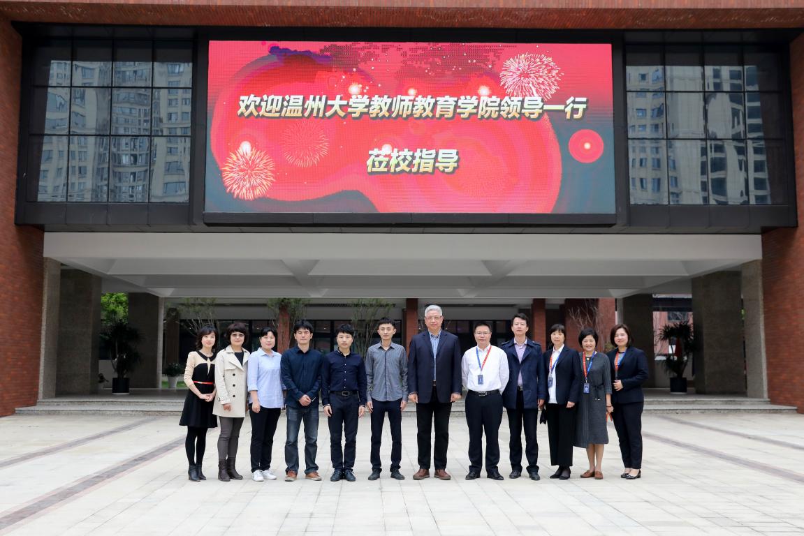 2018年4月12日上午9:30,潘玉进副院长带领心理系主任颜文靖、小学教育系副主任章勤琼、教育技术系副主任李丽、教育系博士吴舒静老师、教务科副科长潘帆及教务科老师张苏阳一行7人到北京外国语大学温州附属学校签署合作协议及授牌。